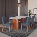 Conjunto De Mesa Sala De Jantar Ripada Santiago 1,80m 6 Cadeiras Creta Dobuê Madeirado GrafiteO conjunto de mesa Santiago 1,80m com 6 cadeiras Creta é a escolha perfeita para cozinhas e salas de jantar que buscam conforto e estilo. A mesa conta com tampo em MDF de alta qualidade e base dupla ripada, que proporciona um visual elegante e atual, transformando o ambiente com um toque de modernidade e sofisticação. As cadeiras oferecem assento e encosto acolchoado e revestido com tecido Veluplus de alta qualidade, a cadeira oferece toque macio e durabilidade excepcional. Feita com materiais resistentes e fáceis de limpar, garantindo maior durabilidade e resistência.MEDIDAS:Medidas Mesa:[ A ] = 80 cm[ L ] = 180 cm[ P ] = 90 cmMedidas Cadeiras (cada):[ A ] = 92 cm[ L ] = 42 cm[ P ] = 60 cmPESO MESA: 50,40 KgPESO CADEIRA: 7,25 Kg (cada)PESO SUPORTADO MESA: 20 Kg (distribuídos)PESO SUPORTADO CADEIRA: 110 Kg cadaMODELO: Conjunto de Mesa Sala de Jantar Ripada Santiago 1,80m 6 Cadeiras CretaMARCA: DobuêESTRUTURA: MDFACABAMENTO MESA: Pintura UVACABAMENTO CADEIRA: VeluplusTECIDO DA CADEIRA: VeluplusREVESTIMENTO ASSENTO E ENCOSTO DA CADEIRA: Espuma D20MATERIAL DO TAMPO: MDFPÉS DA CADEIRA: Sapatas PlásticasDIFERENCIAL: Material em MDF de alta resistência, mesa com base ripada, cadeiras com assento e encosto acolchoados, tecido veluplus.SISTEMA DE MONTAGEM: Parafusos e porcas cilíndricasITENS INCLUSOS: 1 Mesa e 6 cadeiras, 1 manual de montagem e 1 kit parafusosINSTRUÇÕES E CUIDADOS: Limpar com pano levemente umedecido com água, não utilizar produtos abrasivosGARANTIA: 3 meses pelo fabricanteA Esplanada Móveis se responsabiliza pela entrega dos produtos adquiridos até a porta de entrada ou portaria do endereço indicado, se a portaria do condomínio permitir, as entregas são efetuadas no piso térreo e é de responsabilidade do cliente a locomoção da mercadoria até seu apartamento ou casa.Confira as dimensões do produto e certifique-se de que estão adequadas aos elevadores, portas e corredores do local da entrega. Não fazemos a montagem, desmontagem do produto e/ou portas e janelas, locomoção pela escada ou içamento pelo lado de fora do prédio. Não está incluso na entrega o deslocamento até o interior do apartamento, com ou sem elevador, ou deslocamento em locais de difícil acesso como escadarias.Caso o cliente necessite de entrega dentro das dificuldades mencionadas, deverá entrar em contato para análise e dúvidas.