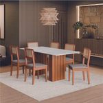 Conjunto De Mesa Sala De Jantar Ripada Tampo Com Vidro 1,80m 6 Cadeiras Santiago Dobuê Madeirado Off WhiteO conjunto de mesa 1,80m com 6 cadeiras Santiago é a escolha perfeita para cozinhas e salas de jantar que buscam conforto e estilo. A mesa possui tampo de vidro temperado colado, e conta com base dupla ripada, que traz um visual moderno e sofisticado ao ambiente. As cadeiras oferecem assento acolchoado e encosto em tela, proporcionando conforto e estilo. Feito com materiais resistentes e fáceis de limpar, este conjunto é perfeito para quem busca estilo, conforto e praticidade em um único produto.MEDIDAS:Medidas Mesa:[ A ] = 80 cm[ L ] = 180 cm[ P ] = 90 cmMedidas Cadeiras (cada):[ A ] = 92 cm[ L ] = 46 cm[ P ] = 40 cmPESO MESA: 66,80 KgPESO CADEIRA: 6,60 Kg (cada)PESO SUPORTADO MESA: 20 Kg (distribuídos)PESO SUPORTADO CADEIRA: 110 Kg cadaMODELO: Conjunto de Mesa Sala de Jantar Ripada Tampo com Vidro 1,80m 6 Cadeiras SantiagoMARCA: DobuêESTRUTURA: MDFACABAMENTO MESA: Pintura UVACABAMENTO CADEIRA: VeluplusTECIDO DA CADEIRA: LinhoREVESTIMENTO ASSENTO E ENCOSTO DA CADEIRA: Espuma D20MATERIAL DO TAMPO: MDFTAMPO COM VIDRO: SimPÉS DA CADEIRA: Sapatas PlásticasDIFERENCIAL: Material em MDF de alta resistência, tampo com vidro e base ripada, encosto da cadeira com tela.SISTEMA DE MONTAGEM: Parafusos e porcas cilíndricasITENS INCLUSOS: 1 Mesa e 6 cadeiras, 1 manual de montagem e 1 kit parafusosINSTRUÇÕES E CUIDADOS: Limpar com pano levemente umedecido com água, não utilizar produtos abrasivosGARANTIA: 3 meses pelo fabricanteA Esplanada Móveis se responsabiliza pela entrega dos produtos adquiridos até a porta de entrada ou portaria do endereço indicado, se a portaria do condomínio permitir, as entregas são efetuadas no piso térreo e é de responsabilidade do cliente a locomoção da mercadoria até seu apartamento ou casa.Confira as dimensões do produto e certifique-se de que estão adequadas aos elevadores, portas e corredores do local da entrega. Não fazemos a montagem, desmontagem do produto e/ou portas e janelas, locomoção pela escada ou içamento pelo lado de fora do prédio. Não está incluso na entrega o deslocamento até o interior do apartamento, com ou sem elevador, ou deslocamento em locais de difícil acesso como escadarias.Caso o cliente necessite de entrega dentro das dificuldades mencionadas, deverá entrar em contato para análise e dúvidas.