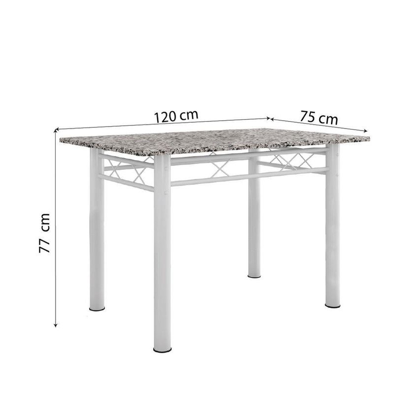 Conjunto De Mesa Sala De Jantar Sara Com 4 Cadeiras Tubular Granito 1,20m Artefamol Branco / FloralO Conjunto de Mesa Sara com 4 Cadeiras foi desenvolvido para trazer ainda mais beleza, conforto e praticidade ao seu lar. A mesa possui tampo retangular em granito natural, material nobre e resistente a altas temperaturas, perfeito para apoiar panelas e travessas sem preocupação. Seu design combina elegância e funcionalidade, tornando o ambiente mais sofisticado. As cadeiras são estofadas com tecido sintético de fácil limpeza, unindo conforto no sentar com a praticidade do dia a dia. O acabamento proporciona toque macio e visual moderno, adaptando-se facilmente a diferentes estilos de decoração. A estrutura da mesa e das cadeiras é feita em aço de alta qualidade, garantindo estabilidade, resistência e longa durabilidade.MEDIDAS:Medidas da Mesa (Base + Tampo):[ A ] = 77 cm[ L ] = 120 cm[ P ] = 75 cmMedidas da Cadeira:[ A ] = 92 cm[ L ] = 34 cm[ P ] = 41 cmPESO MESA: 64,8kg (Base + Tampo)PESO CADEIRA: 2,36 kgCADEIRAS SUPORTAM: 120kgMESA SUPORTA: 100kgCaracterísticasMODELO: Conjunto De Mesa Sala de Jantar Sara Com 4 Cadeiras Tubular Granito 1,20m ArtefamolMARCA: ArtefamolACABAMENTO: LisoMATERIAL: Base e Cadeira de AçoTAMPO MESA: Granito naturalASSENTO: Tecido sintéticoPÉS: sapatas plásticasITENS INCLUSOS: 1 Base, 1 Tampo e 4 CadeirasGARANTIA: 3 MesesA Esplanada Móveis se responsabiliza pela entrega dos produtos adquiridos até a porta de entrada ou portaria do endereço indicado, se a portaria do condomínio permitir, as entregas são efetuadas no piso térreo e é de responsabilidade do cliente a locomoção da mercadoria até seu apartamento ou casa.Confira as dimensões do produto e certifique-se de que estão adequadas aos elevadores, portas e corredores do local da entrega. Não fazemos a montagem, desmontagem do produto e/ou portas e janelas, transporte pela escada ou içamento pelo lado de fora do prédio. Não está incluso no serviço de entrega o deslocamento até o interior do apartamento, com ou sem elevador, ou deslocamento em locais de difícil acesso como escadarias.Caso o cliente necessite de entrega dentro das dificuldades mencionadas, deverá entrar em contato para análise e cotação do valor do serviço.Certifique-se de tudo antes de finalizar a compra, evitando assim futuros desagrados ou imprevistos com a entrega. Medidas da Mesa (Base + Tampo):: [ A ] = 77 cm [ L ] = 120 cm [ P ] = 75 cm | Medidas da Cadeira:: [ A ] = 92 cm [ L ] = 34 cm [ P ] = 41 cm | PESO CADEIRA:: 2,36 kg | ACABAMENTO:: Liso | MATERIAL:: Base e Cadeira de Aço | TAMPO MESA:: Granito natural | ASSENTO:: Tecido sintético | PESO MESA:: 64,8kg (Base + Tampo) | CADEIRAS SUPORTAM:: 120kg | MESA SUPORTA:: 100kg | MODELO:: Conjunto De Mesa Sala de Jantar Sara Com 4 Cadeiras Tubular Granito 1,20m Artefamol | MARCA:: Artefamol | PÉS:: sapatas plásticas | ITENS INCLUSOS:: 1 Base, 1 Tampo e 4 Cadeiras | GARANTIA:: 3 Meses | AVISO:: A Esplanada Móveis se responsabiliza pela entrega dos produtos adquiridos até a porta de entrada ou portaria do endereço indicado, se a portaria do condomínio permitir, as entregas são efetuadas no piso térreo e é de responsabilidade do cliente a locomoçã | ALTURA:: 92cm | AMBIENTE RECOMENDADO:: Cozinha | FORMA:: Retangular | MANUAL DE MONTAGEM:: Incluso | MATERIAL DO TAMPO:: Granito | EMBALAGEM:: 4 Volumes | MONTAGEM:: Necessita Montagem | Cor: Branco / Floral