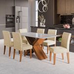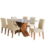 Conjunto De Mesa Sala De Jantar Tampo Com Vidro 1,60m Grécia 6 Cadeiras Creta Dobuê Madeirado / BegeO Conjunto de Mesa Grécia com 6 cadeiras Creta é perfeito para compor sua cozinha ou Sala de Jantar. A mesa possui base com design moderno, e tampo em MDF com vidro temperado, que forma uma camada transparente de alta resistência que garante mais qualidade além de deixar seu ambiente mais sofisticado. As cadeiras oferecem assento e encosto acolchoado e revestido com tecido Veluplus de alta qualidade, a cadeira oferece toque macio e durabilidade excepcional. Feita com materiais resistentes e fáceis de limpar, garantindo maior durabilidade e resistência.MEDIDAS:Medidas Mesa:[ A ] = 80 cm[ L ] = 160 cm[ P ] = 90 cmMedidas Cadeiras (cada):[ A ] = 92 cm[ L ] = 42 cm[ P ] = 60 cmPESO MESA: 47,70 KgPESO CADEIRA: 7,25 Kg (cada)PESO SUPORTADO MESA: 40 Kg (distribuídos)PESO SUPORTADO CADEIRA: 110 Kg cadaMODELO: Conjunto de Mesa Sala de Jantar Tampo com Vidro 1,60m Grécia 6 Cadeiras CretaMARCA: DobuêESTRUTURA: MDFACABAMENTO MESA: Pintura UVACABAMENTO CADEIRA: VeluplusTECIDO DA CADEIRA: VeluplusREVESTIMENTO ASSENTO E ENCOSTO DA CADEIRA: Espuma D20MATERIAL DO TAMPO: MDFTAMPO COM VIDRO: SimPÉS DA CADEIRA: Sapatas PlásticasDIFERENCIAL: Material em MDF de alta resistência, tampo com vidro, cadeiras com assento e encosto acolchoados, tecido veluplus.SISTEMA DE MONTAGEM: Parafusos e porcas cilíndricasITENS INCLUSOS: 1 Mesa e 6 cadeiras, 1 manual de montagem e 1 kit parafusosINSTRUÇÕES E CUIDADOS: Limpar com pano levemente umedecido com água, não utilizar produtos abrasivosGARANTIA: 3 meses pelo fabricanteA Esplanada Móveis se responsabiliza pela entrega dos produtos adquiridos até a porta de entrada ou portaria do endereço indicado, se a portaria do condomínio permitir, as entregas são efetuadas no piso térreo e é de responsabilidade do cliente a locomoção da mercadoria até seu apartamento ou casa.Confira as dimensões do produto e certifique-se de que estão adequadas aos elevadores, portas e corredores do local da entrega. Não fazemos a montagem, desmontagem do produto e/ou portas e janelas, transporte pela escada ou içamento pelo lado de fora do prédio. Não está incluso no serviço de entrega o deslocamento até o interior do apartamento, com ou sem elevador, ou deslocamento em locais de difícil acesso como escadarias.Caso o cliente necessite de entrega dentro das dificuldades mencionadas, deverá entrar em contato para análise e cotação do valor do serviço.Certifique-se de tudo antes de finalizar a compra, evitando assim futuros desagrados ou imprevistos com a entrega. MEDIDAS MESA:: [ A ] = 80 cm [ L ] = 160 cm [ P ] = 90 cm | MEDIDAS CADEIRAS (cada):: [ A ] = 92 cm [ L ] = 42 cm [ P ] = 60 cm | PESO MESA:: 47,70 Kg | PESO CADEIRA:: 7,25 Kg (cada) | PESO SUPORTADO MESA:: 40 Kg (distribuídos) | MODELO:: Conjunto de Mesa Sala de Jantar Tampo com Vidro 1,60m Grécia 6 Cadeiras Creta | ACABAMENTO MESA:: Pintura UV | PESO SUPORTADO CADEIRA:: 110 Kg cada | MARCA:: Dobuê | ESTRUTURA:: MDF | ACABAMENTO CADEIRA:: Veluplus | TECIDO DA CADEIRA:: Veluplus | REVESTIMENTO ASSENTO E ENCOSTO DA CADEIRA:: Espuma D20 | MATERIAL DO TAMPO:: MDF | SISTEMA DE MONTAGEM:: Parafusos e porcas cilíndricas | INSTRUÇÕES E CUIDADOS:: Limpar com pano levemente umedecido com água, não utilizar produtos abrasivos | GARANTIA:: 3 meses pelo fabricante | AVISO:: A Esplanada Móveis se responsabiliza pela entrega dos produtos adquiridos até a porta de entrada ou portaria do endereço indicado, se a portaria do condomínio permitir, as entregas são efetuadas no piso térreo e é de responsabilidade do cliente. | ITENS INCLUSOS:: 1 Mesa e 6 cadeiras, 1 manual de montagem e 1 kit parafusos | TAMPO COM VIDRO:: Sim | PÉS DA CADEIRA:: Sapatas Plásticas | DIFERENCIAL:: Material em MDF de alta resistência, tampo com vidro, cadeiras com assento e encosto acolchoados, tecido veluplus. | Altura: 80 | Ambiente recomendado: sala de estar | Forma: retangular | Inclui manual de montagem: sim | Material da tampa: mdp | Quantidade de caixas de embalagem: 8 | Requer montagem: sim | Cor: Madeirado / Bege