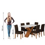 Conjunto De Mesa Sala De Jantar Tampo Com Vidro 1,60m Grécia 6 Cadeiras Trieste Dobuê Madeirado/chocolateO Conjunto de Mesa Grécia com 6 cadeiras Trieste é perfeito para compor sua cozinha ou Sala de Jantar. A mesa possui base com design moderno, e tampo em MDF com vidro temperado, que forma uma camada transparente de alta resistência que garante mais qualidade além de deixar seu ambiente mais sofisticado. Já as cadeiras, com estrutura em MDF e revestimento em tecido Veluplus, oferecem um toque suave e aconchegante. Os assentos e encostos são acolchoados com espuma de alta qualidade, proporcionando máximo conforto.MEDIDAS:Medidas Mesa:[ A ] = 80 cm[ L ] = 160 cm[ P ] = 90 cmMedidas Cadeiras (cada):[ A ] = 92 cm[ L ] = 42 cm[ P ] = 60 cmPESO MESA: 47,70 KgPESO CADEIRA: 7,30 Kg (cada)PESO SUPORTADO MESA: 40 Kg (distribuídos)PESO SUPORTADO CADEIRA: 110 Kg cadaMODELO: Conjunto de Mesa Sala de Jantar Tampo com Vidro 1,60m Grécia 6 Cadeiras TriesteMARCA: DobuêESTRUTURA: MDFACABAMENTO MESA: Pintura UVACABAMENTO CADEIRA: VeluplusTECIDO DA CADEIRA: VeluplusREVESTIMENTO ASSENTO E ENCOSTO DA CADEIRA: Espuma D20MATERIAL DO TAMPO: MDFTAMPO COM VIDRO: SimPÉS DA CADEIRA: Sapatas PlásticasDIFERENCIAL: Material em MDF de alta resistência, tampo com vidro, cadeiras com assento e encosto acolchoados, tecido veluplus.SISTEMA DE MONTAGEM: Parafusos e porcas cilíndricasITENS INCLUSOS: 1 Mesa e 6 cadeiras, 1 manual de montagem e 1 kit parafusosINSTRUÇÕES E CUIDADOS: Limpar com pano levemente umedecido com água, não utilizar produtos abrasivosGARANTIA: 3 meses pelo fabricanteA Esplanada Móveis se responsabiliza pela entrega dos produtos adquiridos até a porta de entrada ou portaria do endereço indicado, se a portaria do condomínio permitir, as entregas são efetuadas no piso térreo e é de responsabilidade do cliente a locomoção da mercadoria até seu apartamento ou casa.Confira as dimensões do produto e certifique-se de que estão adequadas aos elevadores, portas e corredores do local da entrega. Não fazemos a montagem, desmontagem do produto e/ou portas e janelas, transporte pela escada ou içamento pelo lado de fora do prédio. Não está incluso no serviço de entrega o deslocamento até o interior do apartamento, com ou sem elevador, ou deslocamento em locais de difícil acesso como escadarias.Caso o cliente necessite de entrega dentro das dificuldades mencionadas, deverá entrar em contato para análise e cotação do valor do serviço.Certifique-se de tudo antes de finalizar a compra, evitando assim futuros desagrados ou imprevistos com a entrega. MEDIDAS MESA:: [ A ] = 80 cm [ L ] = 160 cm [ P ] = 90 cm | MEDIDAS CADEIRAS (cada):: [ A ] = 92 cm [ L ] = 42 cm [ P ] = 60 cm | PESO MESA:: 47,70 Kg | PESO SUPORTADO CADEIRA:: 110 Kg cada | MODELO:: Conjunto de Mesa Sala de Jantar Tampo com Vidro 1,60m Grécia 6 Cadeiras Trieste | MARCA:: Dobuê | ACABAMENTO MESA:: Pintura UV | PESO CADEIRA:: 7,30 Kg (cada) | PESO SUPORTADO MESA:: 40 Kg (distribuídos) | ESTRUTURA:: MDF | ACABAMENTO CADEIRA:: Veluplus | TECIDO DA CADEIRA:: Veluplus | REVESTIMENTO ASSENTO E ENCOSTO DA CADEIRA:: Espuma D20 | MATERIAL DO TAMPO:: MDF | TAMPO COM VIDRO:: Sim | PÉS DA CADEIRA:: Sapatas Plásticas | DIFERENCIAL:: Material em MDF de alta resistência, tampo com vidro, cadeiras com assento e encosto acolchoados, tecido veluplus. | SISTEMA DE MONTAGEM:: Parafusos e porcas cilíndricas | ITENS INCLUSOS:: 1 Mesa e 6 cadeiras, 1 manual de montagem e 1 kit parafusos | INSTRUÇÕES E CUIDADOS:: Limpar com pano levemente umedecido com água, não utilizar produtos abrasivos | GARANTIA:: 3 meses pelo fabricante | AVISO:: A Esplanada Móveis se responsabiliza pela entrega dos produtos adquiridos até a porta de entrada ou portaria do endereço indicado, se a portaria do condomínio permitir, as entregas são efetuadas no piso térreo e é de responsabilidade do cliente. | Altura: 80 | Ambiente recomendado: sala de jantar | Forma: retangular | Inclui manual de montagem: sim | Material da tampa: mdp | Quantidade de caixas de embalagem: 8 | Requer montagem: sim | Cor: Madeirado/Chocolate