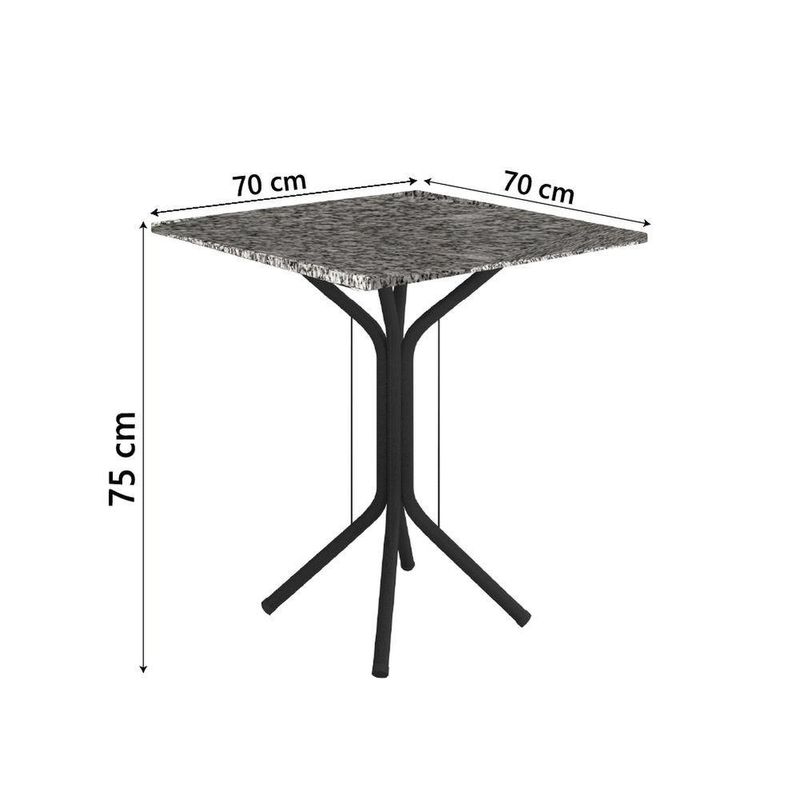 Conjunto De Mesa Sala De Jantar Thais Com 4 Cadeiras Granito Tubular Artefamol Preto/platinaO Conjunto Sala de Jantar Mesa Thais com 4 Cadeiras , foi desenvolvido para trazer ainda mais beleza e conforto para o seu lar. Possui tampo quadrado em granito resistente a altas temperaturas, e as cadeiras são revestidas em tecido sintético de fácil limpeza. Ainda conta com a base da mesa e das cadeiras de aço, garantindo resistência e durabilidade.MEDIDAS:Medidas da mesa:A = 75 cmL = 70 cmP = 70 cmMedidas das cadeiras:A = 92 cmL = 34 cmP = 41 cmPESO MESA: 27,3 Kg (Base + Tampo)PESO CADEIRA: 2,36 Kg cadaPESO SUPORTADO PELA MESA: 25 Kg distribuídosPESO SUPORTADO POR CADEIRA (cada): 120 KgMODELO: Conjunto de Mesa Sala De Jantar Thais Com 4 Cadeiras Granito TubularMARCA: ArtefamolESTRUTURA: Base e Cadeira de AçoMATERIAL DO TAMPO: GranitoACABAMENTO: LisoTECIDO DA CADEIRA: SintéticoREVESTIMENTO INTERIOR DA CADEIRA: Espuma D10POSSUI SAPATAS: SimMATERIAIS DA SAPATA: PlásticoINSTRUÇÕES E CUIDADOS: Para maior durabilidade, recomendável que a limpeza dos móveis seja feita com pano limpo e levemente umedecido em água e sabão neutro. Em seguida, deverá ser passado um pano limpo e seco.ITENS INCLUSOS: 1 Base, 1 Tampo e 4 CadeirasGARANTIA: 3 meses pelo fabricanteImportante sobre a : A é realizada até a portaria ou porta de entrada do indicado, desde que o acesso seja permitido. Para locais com portaria, a será feita no piso térreo.Não realizamos montagem, desmontagem, por escadas ou içamento. É responsabilidade do cliente verificar se as dimensões do produto são compatíveis com portas, elevadores e corredores. Evite imprevistos: confira todos os detalhes antes de concluir sua compra. MEDIDAS MESA:: A = 75 cm L = 70 cm P = 70 cm | MEDIDAS CADEIRAS:: A = 92 cm L = 34 cm P = 41 cm | PESO MESA:: 27,3 Kg (Base + Tampo) | PESO SUPORTADO POR CADEIRA (cada):: 120 Kg | MODELO:: Conjunto de Mesa Sala De Jantar Thais Com 4 Cadeiras Granito Tubular | ESTRUTURA:: Base e Cadeira de Aço | MATERIAL DO TAMPO:: Granito | ACABAMENTO:: Liso | PESO CADEIRA:: 2,36 Kg cada | MARCA:: Artefamol | PESO SUPORTADO PELA MESA:: 25 Kg distribuídos | REVESTIMENTO INTERIOR DA CADEIRA:: Espuma D10 | POSSUI SAPATAS:: Sim | MATERIAIS DA SAPATA:: Plástico | INSTRUÇÕES E CUIDADOS:: Para maior durabilidade, recomendável que a limpeza dos móveis seja feita com pano limpo e levemente umedecido em água e sabão neutro. Em seguida, deverá ser passado um pano limpo e seco. | ITENS INCLUSOS:: 1 Base, 1 Tampo e 4 Cadeiras | TECIDO DA CADEIRA:: Sintético | GARANTIA:: 3 meses pelo fabricante | AVISO:: Importante sobre a : A é realizada até a portaria ou porta de entrada do indicado, desde que o acesso seja permitido. Para locais com portaria, a será feita no piso térreo. | Altura: 75 | Ambiente recomendado: sala de jantar | Forma: quadrada | Inclui manual de montagem: sim | Material da tampa: Granito | Quantidade de caixas de embalagem: 6 | Requer montagem: sim | Cor: Preto/Platina