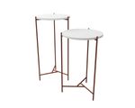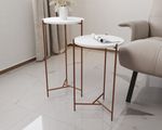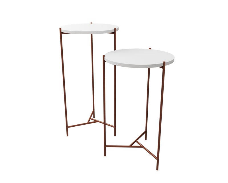 Conjunto de Mesas Lateral Áquila Cobre com Tampo BrancoOrganização e Estilo em um Só Móvel!O Conjunto de Mesas Lateral Áquila Cobre com Tampo Branco da marca Asturias é a peça que faltava para trazer elegância e praticidade ao seu ambiente. Com um design charmoso e contemporâneo, essa mesa lateral é perfeita para trazer um toque de cor e sofisticação aos seus espaços.Fabricada com estrutura em ferro maciço e tampos em MDF de alta qualidade, o Conjunto de Mesas Lateral Áquila Cobre suporta até 15kg, oferecendo não apenas beleza, mas também durabilidade e resistência para o seu dia a dia.Seus 65 cm de altura na mesa maior e 55 cm de altura na mesa menor e 30 cm de largura proporcionam o equilíbrio perfeito entre funcionalidade e design, garantindo que a mesa se encaixe perfeitamente em qualquer ambiente, seja na sala de estar, no quarto ou no escritório.Diferenciais:Estrutura em ferro maciço e tampos em MDF de qualidadeDesign elegante e despojadoCada mesa suporta até 15kgDisponível na belíssima cor CobreSão 2 mesas pelo preço de 1Dicas de Uso:Combine a Mesa Lateral Áquila Cobre com elementos decorativos que complementem seu estilo, como velas aromáticas, vasos de plantas ou livros. Use-a para apoiar objetos do dia a dia ou como suporte para um abajur, criando um ambiente aconchegante e cheio de personalidade.Ficha Técnica:Marca: AsturiasMaterial: Estrutura em ferro maciço e tampos em MDFDimensões: 65cm x 30cm (mesa maior) e 55cm x 30cm (mesa menor)Peso: 4000gCategoria: Mesas LateraisPintura epóxiTampos em MDF