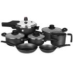 O Conjunto de Panelas Gourmet da Multiflon foi especialmente desenvolvido para agregar estilo, praticidade e qualidade em sua cozinha!As panelas que compõem esse kit possuem Antiaderente Ultra com 7 camadas, um revestimento com diferentes gradações de antiaderência que aumentam sua eficiência e performance para proporcionar um desempenho superior e de alta qualidade. Assim, os alimentos não grudam, cozinham de forma mais rápida e uniforme, e ficam mais saudáveis, pois precisam de pouquíssima quantidade de óleo durante o preparo.Esse acabamento também garante fácil limpeza, longa vida útil ao produto e proporciona mais beleza e elegância para suas panelas!Para complementar os benefícios do Conjunto de Panelas Gourmet, as peças contam com tampas de vidro que facilitam a visualização dos alimentos, cabos anatômicos fabricados em baquelite antitérmico que não aquecem durante o uso, e são livres de PFOA pois contam com ausência de elementos nocivos à saúde, garantindo segurança, saúde e proteção para cozinhar diferentes receitas do seu dia a dia.