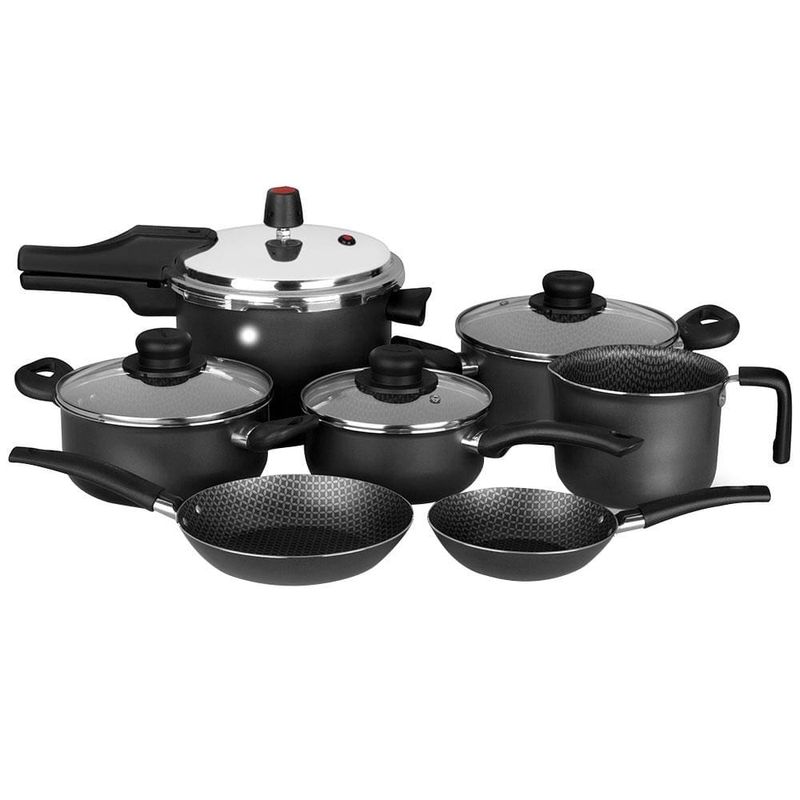 Conjunto de Panelas 7 Peças Multiflon Gourmet com Revestimento Antiaderente Ultra7 e Panela de Pressão - Preto