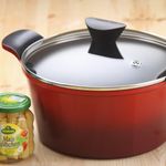 Conjunto De Panelas Com Revestimento Cerâmico - Venn - Neoflam - Cor Vermelha - 5 Peças VermelhoDescriçãoConjunto de Panelas de Cerâmica Venn (EK-VE-5R2)Descubra a praticidade e elegância do Conjunto de Panelas de Cerâmica Venn, um item essencial para a sua cozinha. Com um design moderno de paredes octogonais e alças perfeitamente integradas, este conjunto é ideal para fritar, cozinhar e servir seus pratos favoritos. Fabricado em alumínio injetado de alta qualidade, ele assegura uma distribuição de calor superior, otimizando o cozimento e contribuindo para um menor consumo de energia. Desfrute da segurança e eficiência do revestimento antiaderente Ecolon, feito com minerais naturais e completamente livre de PFOA, garantindo uma culinária mais saudável e sem preocupações.Pensada para o seu dia a dia, este conjunto antiaderente se destaca pela durabilidade superior e resistência a riscos, mantendo-se como nova por mais tempo. Sua construção inteligente, sem parafusos ou rebites em contato com o alimento, a torna excepcionalmente higiênica e fácil de limpar. A tampa com ventilação de vapor integrada eleva a segurança, prevenindo estouros e queimaduras durante o uso. Versátil, o Jogo de Panelas é adequada para fogões a gás e elétricos, adaptando-se perfeitamente a qualquer estilo de cozinha.Tecnologia Ecolon: Cozinha Saudável e SustentávelCom a tecnologia Ecolon, suas panelas de cerâmica trazem uma nova dimensão para a sua cozinha. Este revestimento, amigo do meio ambiente e do corpo humano, garante que você cozinhe sem substâncias nocivas como PFOA, cádmio ou chumbo, sendo reconhecido internacionalmente por sua segurança e por ser Eco Amigavel. Além disso, o Ecolon proporciona um poderoso desempenho antiaderente, permitindo cozinhar com menos óleo e facilitando a limpeza. Graças à sua notável resistência a riscos e desgastes, suas panelas Ecolon mantêm a beleza e o desempenho por muito mais tempo. E o melhor: a tecnologia por trás do Ecolon otimiza a distribuição de calor, fazendo com que os alimentos cozinhem de forma mais rápida e uniforme, tornando seu dia a dia na cozinha muito mais prático e eficiente.Contem:1 Panela Alumínio 18cm - 2,0LPanela em alumínio com revestimento cerâmico1 Caçarola Alumínio 20cm - 2,4LCaçarola em alumínio com revestimento cerâmico1 Caçarola Alumínio 24cm - 4,6LCaçarola em alumínio com revestimento cerâmico1 Caçarola Rasa Alumínio 24cm - 2,8LCaçarola em alumínio com revestimento cerâmico1 Frigideira 26 cm - 2,0LFrigideira em alumínio com revestimento cerâmico1 Pegador de Silicone (Incluso)Acompanha caçarola para proteção para alça4 Tampas de Vidro TemperadoEspecificações TécnicasCódigo do ProdutoEK-VE-5R2ModeloVennPeso9,00 KgVolume6,3 LEspessura4 mmMaterialAlumínio InjetadoRevestimentoEcolonUso em fogõesGás e ElétricoCertificaçãoPFOA FreeCorVermelhoDimensões da Caixa (AxLxC)26cm x 36cm x 58cmCuidados-Utilizar a panela untada com óleo espalhado por toda extremidade.-Não aqueça a panela, caçarola ou frigideira vazia-Recomendamos sempre o uso em fogo baixo - médio, os produtos tem uma alta eficiência térmica-Utilize utensílios domésticos de silicone, bambo ou plástico (Nunca use objetos cortantes e pontiagudos)-Efetue a limpeza apenas utilizando detergente neutro e esponja macia-Em caso de resíduo de comida mais resistente, coloque uma gota de detergente e Água, leve ao fogo baixo, por 3 minutos-Não utilize produtos abrasivos ou químicos para a limpezaGarantia90 dias de garantia legal para defeitos de fabricação.A garantia não inclui defeitos causados por má utilização do produto.