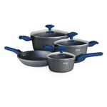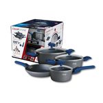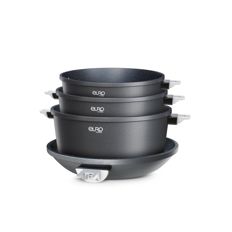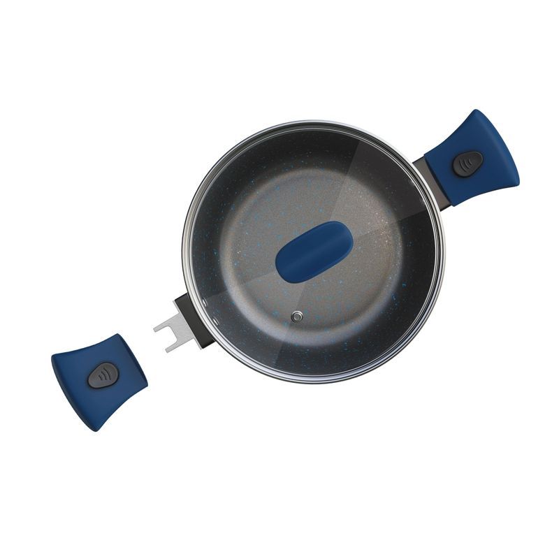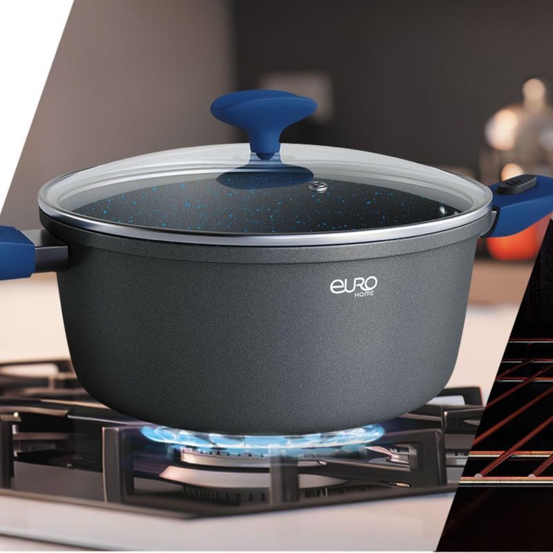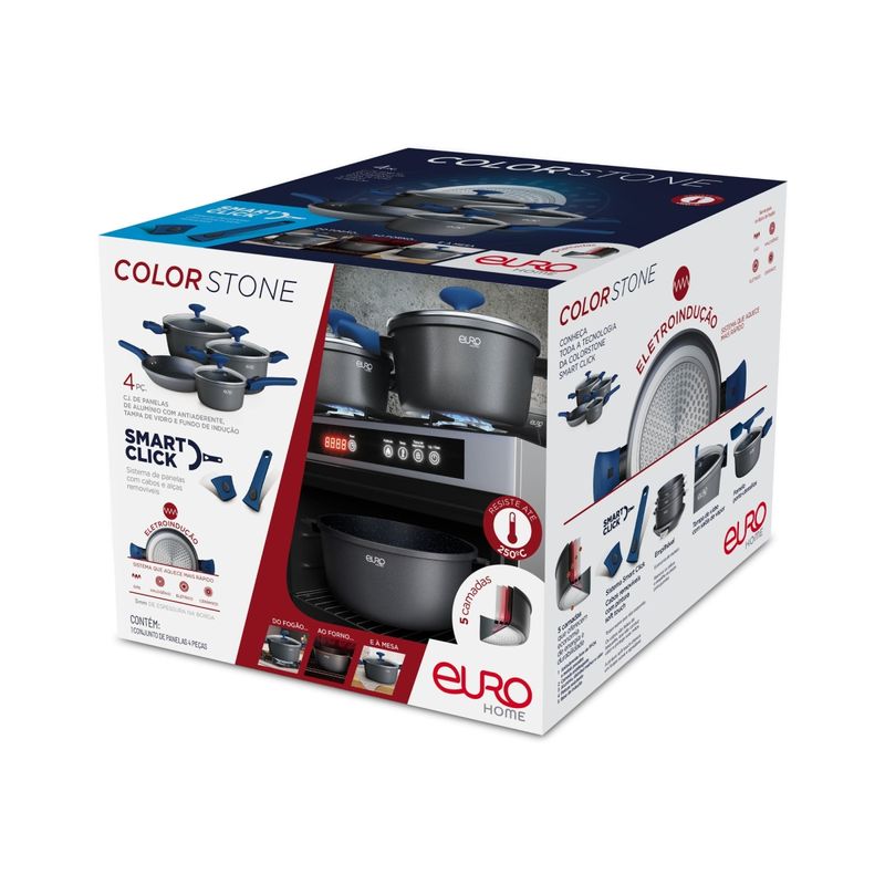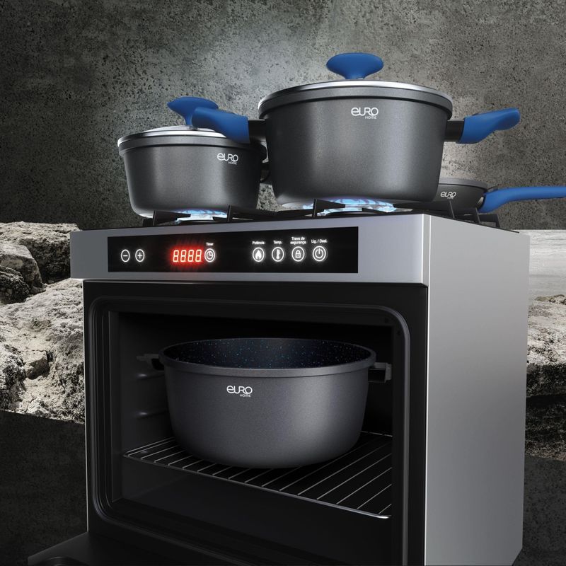 Conjunto de Panelas Euro Home Colorstone Smart Click 4 Peças Antiaderente Cabo Removível Azul Com o Conjunto de Panelas Colorstone Smart Click da Euro Home, você transforma sua forma de cozinhar. São 4 peças modernas e práticas, ideais para preparar refeições saborosas com eficiência. O grande diferencial é o cabo removível Soft Touch, que permite usar as panelas no fogão e no forno, além de facilitar o armazenamento. Cada peça possui 5 camadas: antiaderente, antidesgaste, alumínio para melhor distribuição de calor, pintura resistente e base de indução. As panelas são livres de PFOA, seguras para a saúde e fáceis de limpar. Com design elegante, podem ir direto à mesa para servir. Cabo removível com acabamento Soft Touch Revestimento antiaderente com 5 camadas Compatível com fogão e forno Base para indução Livre de PFOA Cor: Azul Que tal combinar esse jogo de panelas com um super Aparelho de Jantar? Aproveite agora mesmo!