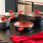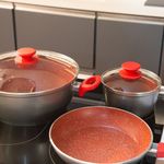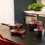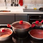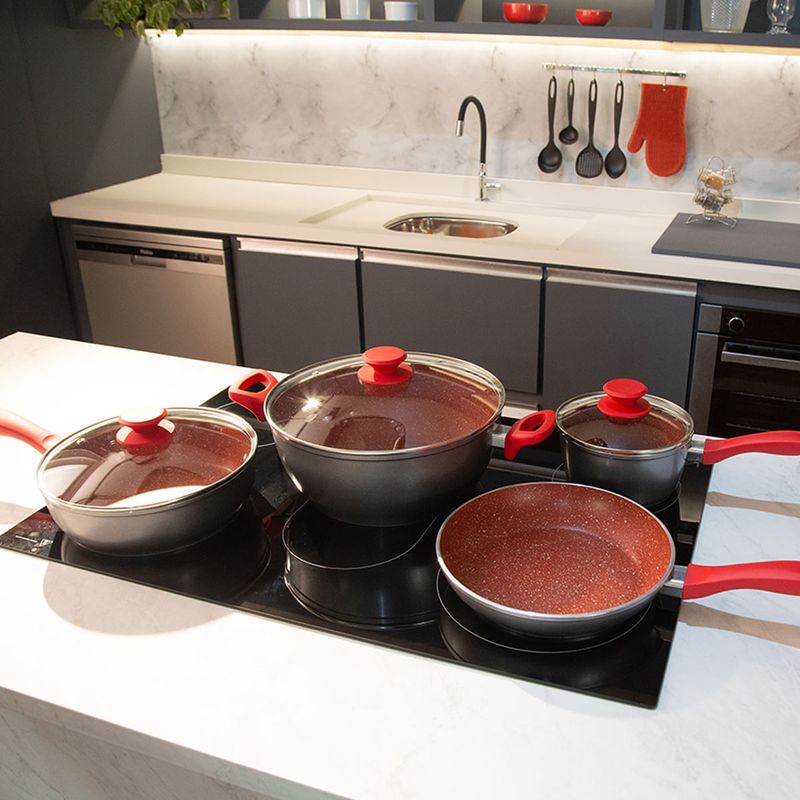 O Conjunto de Panelas Philco Redstone PKT407, composto por 4 peças, se destaca pelo revestimento cerâmico de alto poder antiaderente Redstone. Essa característica permite preparar alimentos sem grudar, tornando a limpeza mais fácil. Além disso, as panelas são versáteis e compatíveis com todos os tipos de fogões, como elétricos, a gás, radiante, indução e vitrocerâmicos. O cabo de baquelite, revestido com material emborrachado, proporciona segurança ao cozinhar, evitando queimaduras nas mãos. A espessura do fundo, de 4,5mm, contribui para uma distribuição mais eficiente e rápida do calor, mantendo a temperatura por mais tempo. Com espessura de 3,5mm, as panelas garantem durabilidade excepcional ao produto. Experimente a qualidade e praticidade do Conjunto de Panelas Philco Redstone PKT407 em sua cozinha. • Cabo de baquelite emborrachado resistente ao calor • Material base da Panela em Alumínio • Revestimento antiaderente “Redstone” • Revestimento antiaderente livre de agentes tóxicos • Pode ser utilizado em queimadores elétricos, a gás, radiante, indução e vitrocerâmicos • Inserto metálico no fundo da panela para contato em fogão/cooktops de indução • Panela com fundo de 4,5 mm para distribuir e manter a temperatura • Garantia de 90 dias contra defeitos de fabricação. PANELA PPH160APR REDSTONE 1,4L • Diâmetro de 16 cm • Volume de 1,4 litros. FRIGIDEIRA PPH240AFR REDSTONE 1,7L • Diâmetro de 24 cm • Volume de 1,7 litros. PANELA PPH240APR REDSTONE 2,7L • Diâmetro de 24 cm • Volume de 2,7 litros. PANELA PPH280ACR REDSTONE 6,1L • Diâmetro de 28 cm • Volume de 6,1 litros.