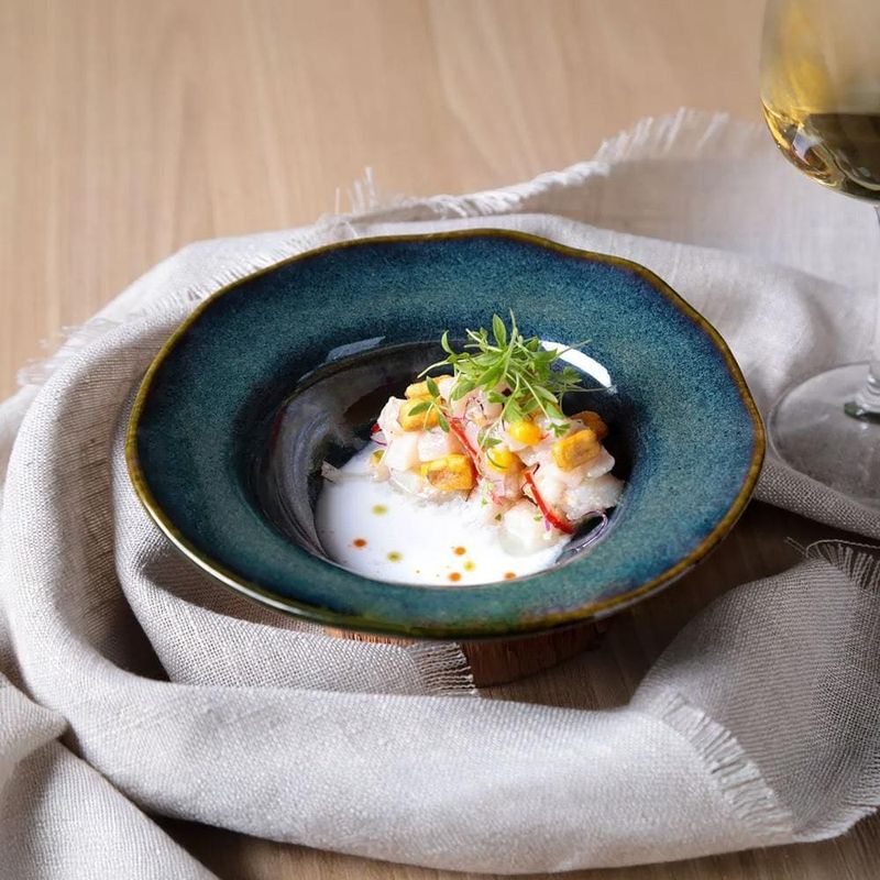 A essência do oceano na sua mesaO conjunto de pratos de sobremesa Porto Brasil Orgânico Oceano transporta a tranquilidade e a beleza do mar para suas refeições. Inspirado nos tons vibrantes das águas e nas formas orgânicas das ondas e corais, o design transmite sofisticação e serenidade. Seja para servir sobremesas, entradas ou petiscos, esse conjunto composto por 4 peças de 250ml eleva qualquer ocasião com um toque de elegância marinha.Praticidade com qualidade premiumProduzidos em Stoneware, material de alta qualidade, os pratos são altamente resistentes e projetados para durar por muitos anos, mesmo com uso frequente. Compatíveis com forno, micro-ondas e freezer, eles garantem praticidade sem comprometer o estilo. Suas texturas delicadas e o acabamento esmaltado tornam cada peça uma obra de arte funcional, ideal para todos os momentos, do dia a dia às celebrações especiais.