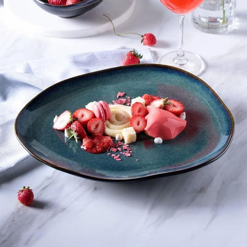 Elegância sustentável e artesanalO Conjunto de Pratos Rasos Ovais Porto Brasil Orgânico Night Sky Azul é composto por 6 peças de 31 cm, que se destacam pelo design único e pela inovação no uso de stoneware, um material cerâmico sustentável. Cada prato é produzido através de um processo de queima e acabamento manual, garantindo exclusividade e originalidade em cada peça. As variações nas formas, cores e relevos são características que tornam este conjunto ainda mais especial, refletindo a beleza da natureza de forma sofisticada e contemporânea.Durabilidade e funcionalidadeAlém da estética apurada, o Conjunto Porto Brasil Orgânico Night Sky Azul possui alta resistência mecânica e térmica, sendo ideal para o uso diário. Atende às principais normas mundiais de qualidade e resistência, garantindo sua durabilidade. As peças são compatíveis com forno, micro-ondas e freezer, oferecendo versatilidade no dia a dia. Para preservar a integridade das peças, é recomendado evitar mudanças térmicas bruscas, garantindo assim que seu conjunto mantenha suas qualidades e beleza ao longo do tempo.