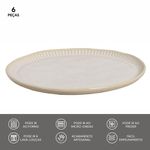 Adicione um Toque Especial à Mesa O Conjunto de Pratos Rasos Linhas Latte Porto Brasil acrescenta charme e delicadeza a decoração da sua mesa. Com 6 peças de 27,5cm de diâmetro e detalhes de linhas sutis nas bordas das peças, os pratos são a escolha certa para dividir momentos especiais com a família e com amigos. Produzido com Material Sustentável Feitos em Stoneware Porto Brasil, um material inovador, trazem o resultado de uma combinação cuidadosa das melhores matérias-primas naturais, aliada a um processo singular de queima e acabamento manual. Praticidade na Sua Cozinha Os pratos Porto Brasil são reconhecidos por sua durabilidade. Além disso, proporcionam a conveniência de serem seguros para uso no micro-ondas e na lava-louças. A limpeza pode ser realizada facilmente com sabão ou detergente e uma esponja macia.