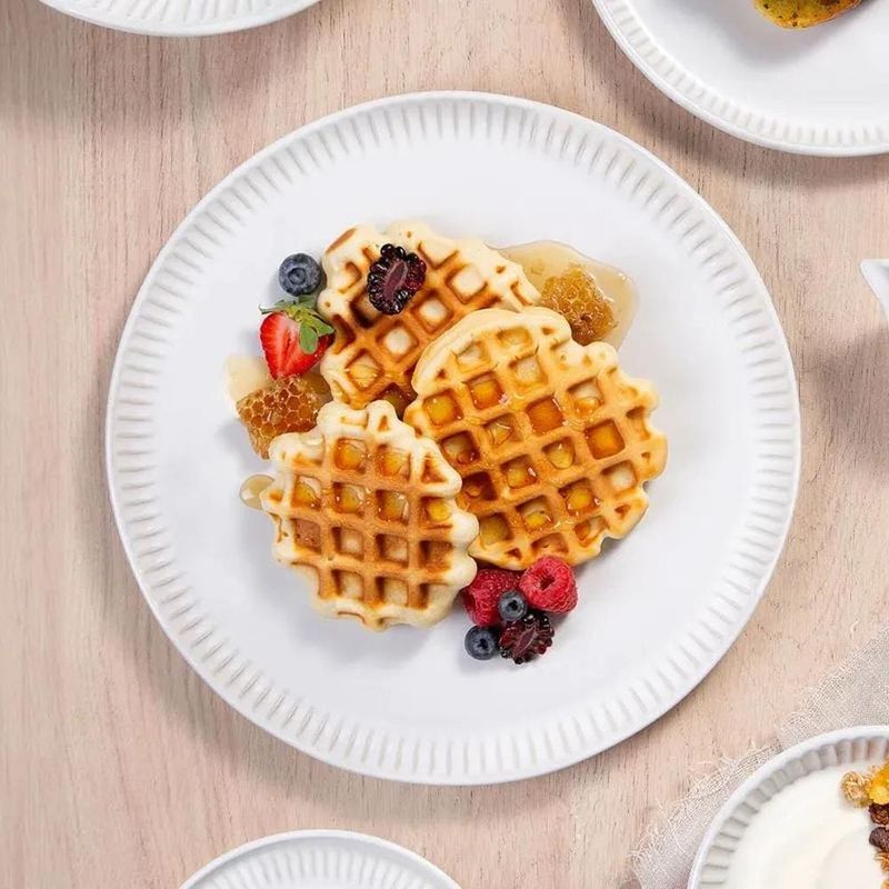 Elegância e funcionalidade para sua mesaO conjunto de pratos rasos Linhas New White da Porto Brasil é a escolha perfeita para quem valoriza estilo e praticidade. Com design clean e linhas atemporais, esses pratos adicionam sofisticação a qualquer refeição, seja no dia a dia ou em ocasiões especiais. A cor branca clássica e versátil harmoniza com qualquer decoração, enquanto o acabamento manual confere exclusividade a cada peça.Benefícios que fazem a diferençaComposto por 6 peças de 27,5 cm, este conjunto atende perfeitamente pratos principais. Fabricados em Stoneware, material cerâmico de alta qualidade, combinam resistência e beleza, sendo seguros para uso no forno, micro-ondas e freezer. Além disso, as peças se destacam por sua durabilidade, suportando impactos e arranhões para um uso prolongado.