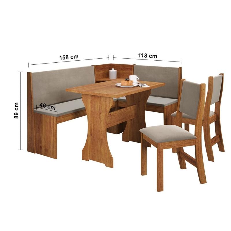MóveisCozinhaMesaMesa com 2 CadeirasCanto Alemão Viero Bernardo com 2 Cadeiras – Mel/Pérola