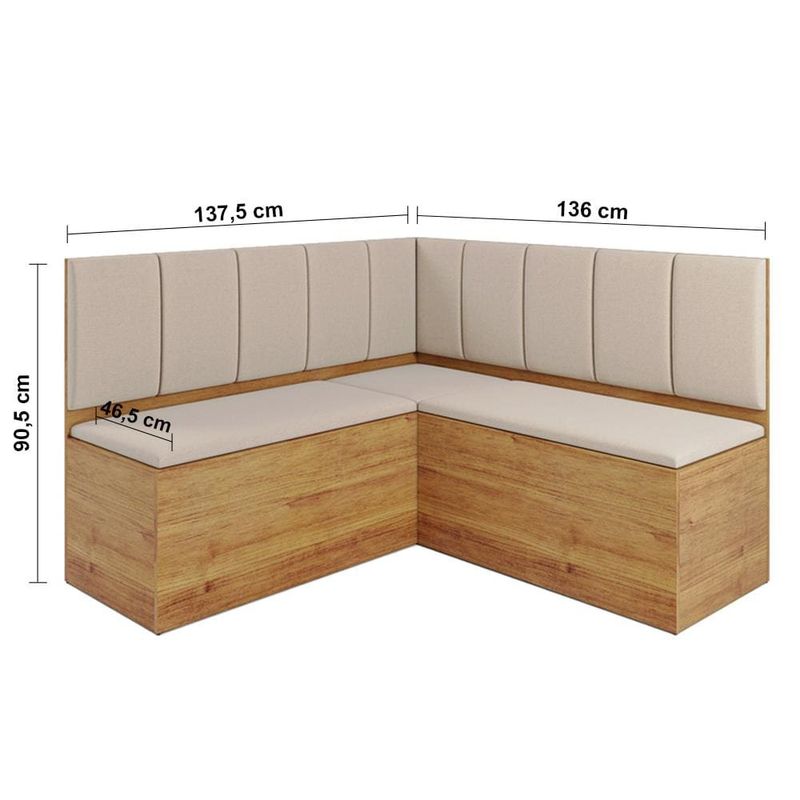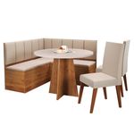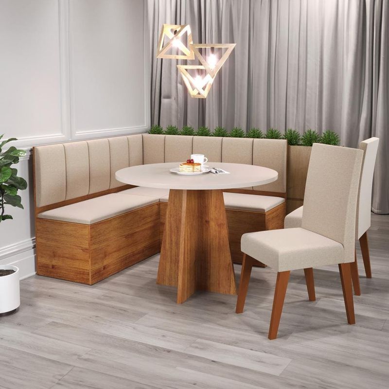 Sofisticação Na Sua Sala de Jantar O Canto Patrik com 2 cadeiras Milão, possui design moderno e elegante. O modelo é composto por um canto baú, que apresenta solução para armazenar itens, duas cadeiras e uma mesa redonda. Beleza Duradoura Além de proporcionar uma decoração requintada, os móveis garantem máxima qualidade. O canto e a mesa são desenvolvidos com estrutura em MDP/MDF e as cadeiras são feitas em madeira maciça com acabamento em linho. Decoração Cheia de Elegância O conjunto inspira conforto e aconchego, o canto é produzido com estofado de espuma D16 e as cadeiras com espuma D20.