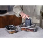 Conjunto para Fechamento a Vácuo Electrolux Vaccum Fresh Todo o poder do vácuo para preservar por 5 vezes mais tempo* vários tipos de alimentos. Composto por seladora a vácuo portátil, potes herméticos de vidro com tampas de inox, sacos herméticos reutilizáveis e rolha de vinho a vácuo, o conjunto é indispensável para quem valoriza tempo e sabor sem desperdício. Menos desperdício com sabor prolongado O fechamento a vácuo retarda a oxidação e a proliferação de bactérias responsáveis pela deterioração dos alimentos*. A vedação hermética impede a emissão de odores e evita a perda de umidade, mantendo o sabor e o aroma original dos alimentos. Prepare, cozinhe, sirva e conserve refeições saudáveis sem esforço O conjunto combina acessórios que permitem muita versatilidade e atende as mais diferentes situações de usos. Seladora a Vácuo Portátil Compacta, portátil, automática, potente e fácil de usar, além de recarregável por meio de cabo USB. Potes de Vidro Borossilicato com tampas de aço inoxidável Resistem a temperaturas de até 230°C e têm tampas de aço inox de alta durabilidade. Permitem preservar, armazenar, levar ao forno e servir os pratos à mesa. Podem ainda ser utilizados no freezer, refrigerador, microondas, air fryer, forno convencional e microondas. Sacos Herméticos Reutilizáveis Ideais para preservar alimentos secos e frescos ou ainda preparar receitas como marinadas e com cozimento sous vide, pois intensificam o sabor dos ingredientes. Vão no freezer, refrigerador, lava-louças, micro-ondas e cozimento sous vide, suportando variações entre -20 °C e 100 °C. Rolhas de Vinho a Vácuo As rolhas de vinho possibilitam a extração do ar de garrafas com diâmetro de 16 a 19 mm para conservar vinho, leite, molhos, óleo, sucos, entre outros alimentos líquidos. Podem ser levadas no freezer, refrigerador, lava-louças e são livres de BPA. COMPOSIÇÃO DO CONJUNTO 1x Seladora a vácuo portátil (7.7 x 7.7 x 9.4 cm) 1x Pote hermético de vidro (22.9 x 17.3 x 7.2 cm – 1.5 L) 1x Pote hermético de vidro (17.7 x 13.2 x 5.8 cm – 650 ml) 5x Sacos herméticos reutilizáveis (25 x 26 cm – 2 L cada) 1x Rolha de vinho (Ø 16 a 19 mm - 3.13 x 3.13 x 3.4 cm) 1x Cabo USB Atenção A seladora a vácuo portátil não deve ser utilizada em nenhum eletrodoméstico. A tampa de aço inox não deve ser usada no microondas e nem exposta a temperaturas superiores a 100°C. *Com base em testes internos que compararam abacates e maçãs armazenados no pote hermético a vácuo com um recipiente aberto na geladeira. **Os resultados podem variar de acordo com o tipo de alimento. A redução do desperdício baseia-se apenas no desempenho do aparelho e não considera a forma de utilização por parte do usuário.