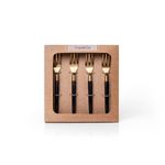 Conjunto De Talheres Copa E Cia Para Aperitivo Finger Food 4 Peças Garbo Stone SlimConjunto de Talheres Copa e Cia para Aperitivo Finger Food 4 Peças Garbo Stone Slim -Características Gerais do Produto: - Composição: Composição por linha de talheres:; Rattan: em aço inoxidável gold com cabo de rattan natural.; Atenas: em aço inoxidável gold com cabo de madrepérola.; Monza: em aço inoxidável silver com cabo de resina.; Goldwood: em aço inoxidável gold com cabo de madeira.; Turim: em aço inoxidável gold com cabo de resina.; Ilhéus: em aço inoxidável com cabo de resina.; Bamboo Natural: em aço inoxidável disponível nas versões gold ou silver, com cabo de bambu natural.; Rattan Natural: em aço inoxidável silver com cabo de rattan.; Luma Silver: em aço inoxidável silver com cabo de acrílico.; Stone Slim: em aço inoxidável gold com cabo em resina.; Opal Wood: em aço inoxidável gold com cabo de madeira e resina. - Detalhes: Design Exclusivo Copa&Cia.; Produzido na Índia.; As cores podem sofrer pequenas alterações de cor, variando de monitor para monitor.; Os objetos que ambientam as fotos não acompanham o produto.; As fotos produzidas são apenas como sugestão de uso com as demais peças da coleção. - Cuidados: Não Armazenar as Peças Todas Juntas, Poderá Provocar Riscos.; Lavar com Detergente Neutro e Esponja Macia.; Não Deixar de Molho.; Secar Bem e Armazenar em Local Seco e Arejado.; Lavar Manualmente; Não podem ser colocados em lava-louças.; Não utilizar solventes, abrasivos ou alvejantes. - Dimensões (cm): Dimensão da Embalagem: Altura: 3 cm, Largura: 14 cm, Comprimento : 17,5 cmAcompanha o produto: - 4 Peças de Garfos para Aperitivo Garantia: - 7 dias/30 dias contra defeito de fabricação