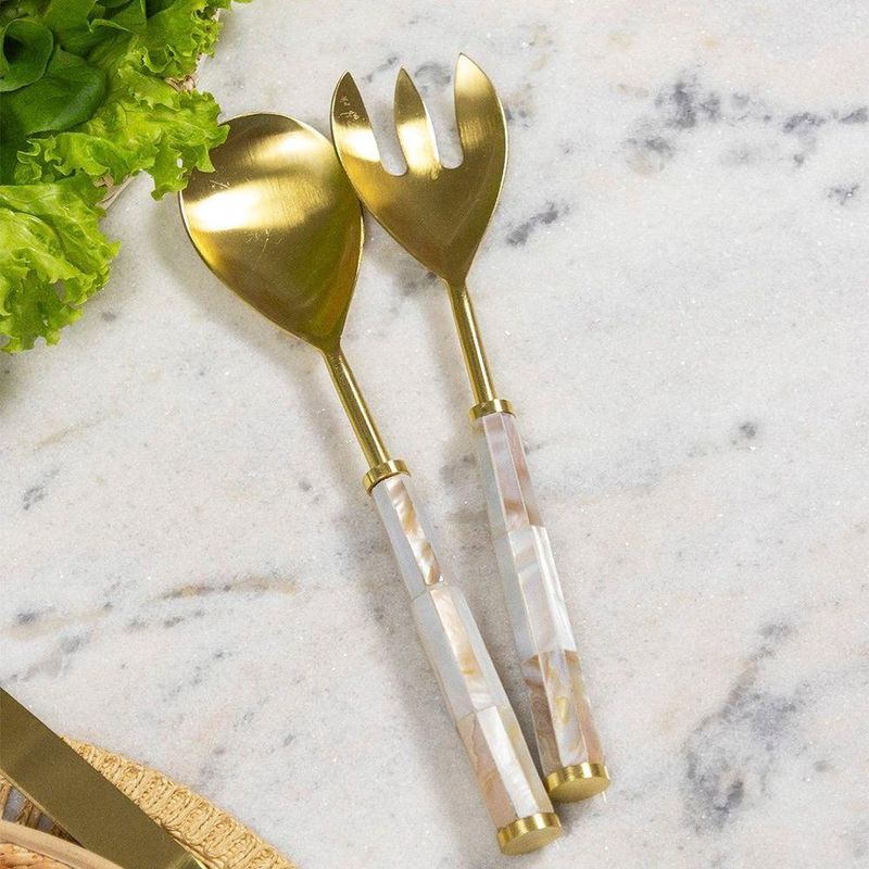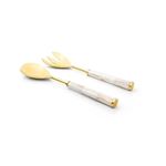 Conjunto De Talheres Copa E Cia Para Salada 2 Peças Garbo AtenasConjunto de Talheres Copa e Cia para Salada 2 Peças Garbo Atenas -Características Gerais do Produto: - Composição: Composição por linha de talheres:; Rattan: em aço inoxidável gold com cabo de rattan natural.; Atenas: em aço inoxidável gold com cabo de madrepérola.; Monza: em aço inoxidável silver com cabo de resina.; Goldwood: em aço inoxidável gold com cabo de madeira.; Turim: em aço inoxidável gold com cabo de resina.; Ilhéus: em aço inoxidável com cabo de resina.; Bamboo: em aço inoxidável silver com cabo de bambu natural escuro.; Rattan Natural: em aço inoxidável silver com cabo de rattan. - Detalhes: Design Exclusivo Copa&Cia.; Produzido na Índia.; As cores podem sofrer pequenas alterações de cor, variando de monitor para monitor.; Os objetos que ambientam as fotos não acompanham o produto.; As fotos produzidas são apenas como sugestão de uso com as demais peças da coleção. - Cuidados: Não Armazenar as Peças Todas Juntas, Poderá Provocar Riscos.; Lavar com Detergente Neutro e Esponja Macia.; Não Deixar de Molho.; Lavar Manualmente; Não podem ser colocados em lava-louças.; Não utilizar solventes, abrasivos ou alvejantes. - Dimensões (cm): Dimensão da Embalagem: Altura:4 cm, Largura: 16 cm, Comprimento: 33 cmAcompanha o produto: - 1 Peças de Colher para Servir Salada1 Peça de Garfo para Servir Salada Garantia: - 7 dias/30 dias contra defeito de fabricação