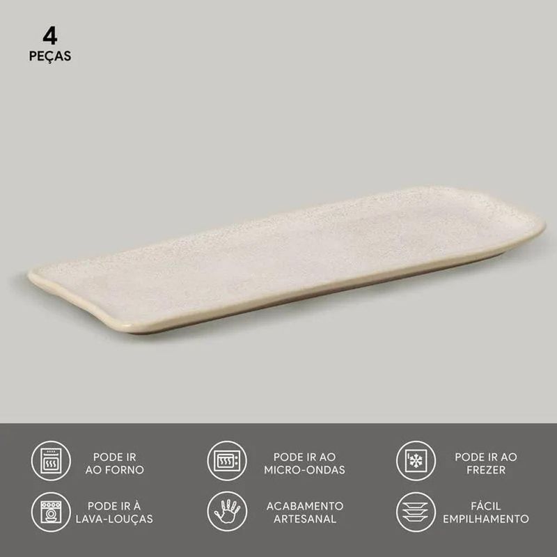 Elegância e Autenticidade ArtesanalO conjunto de travessas Orgânico Latte é produzido em Stoneware Porto Brasil, um material cerâmico inovador que combina matérias-primas naturais com um processo exclusivo de queima e acabamento manual. Essa técnica confere às peças alta qualidade, resistência e características únicas, como variações de formas, relevos e cores, que garantem sua autenticidade e originalidade.Charme e Sofisticação a mesaCom dimensões de 33 cm x 13 cm x 1,8 cm, as travessas são ideais para apresentar seus pratos com estilo e praticidade. A cor off-white oferece uma estética clean e versátil, perfeita para diferentes ocasiões, valorizando a mesa com elegância e um toque contemporâneo.