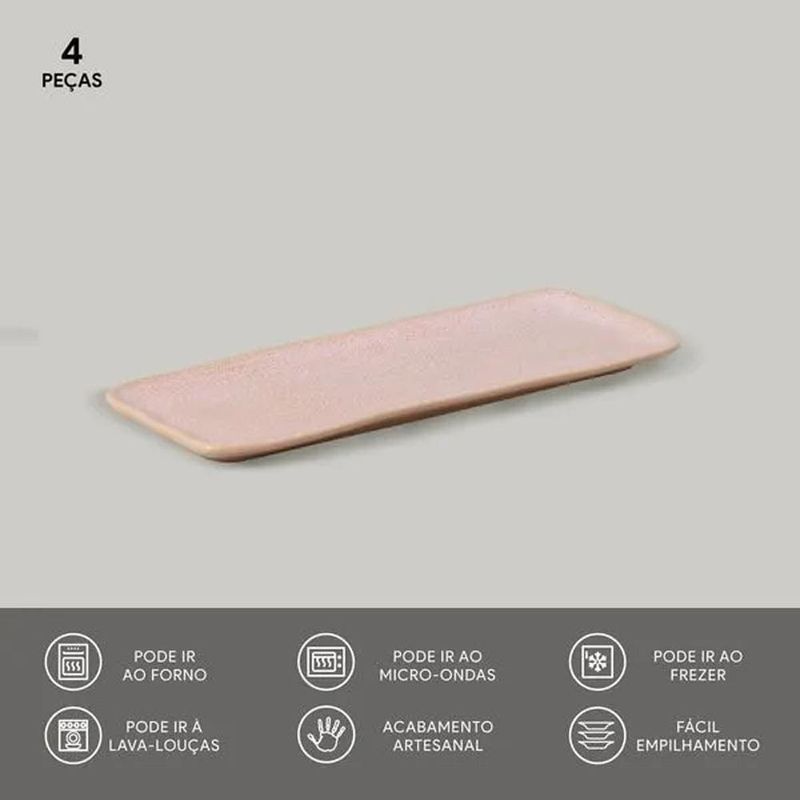 Sofisticação e Qualidade SuperiorO Conjunto de Travessas Orgânico Litchi Rosa Claro com 4 Peças traz delicadeza e funcionalidade para a sua mesa. Feito em stoneware, um material cerâmico de alta qualidade, o conjunto combina inovação, sustentabilidade e resistência. Produzidas com matérias-primas naturais e finalizadas por meio de um exclusivo processo de queima e acabamento manual, as travessas garantem durabilidade excepcional e estão em conformidade com as principais normas internacionais.Autenticidade e Design ÚnicoCada peça do conjunto Orgânico Litchi é única, destacando formas orgânicas e texturas exclusivas. A suave tonalidade rosa claro, somada às variações naturais de cor e relevos delicados, evidencia o trabalho artesanal em cada detalhe. Ideal para composições de mesa elegantes ou ocasiões especiais, este conjunto é a escolha perfeita para quem valoriza estilo, originalidade e sustentabilidade em um único produto.