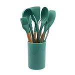 Conjunto De Utensilios Silicone 8 Peças - Verde EscuroConjunto de Utensilios Silicone 8 peças - Verde Escuro Esse é o conjunto ideal para quem deseja manter a cozinha ainda mais equipada. Complemente seus utensilios e esteja pronto para realizar as mais diversas receitas utilizando esse kit de ótima qualidade, resistente e que garante maior durabilidade. Feito totalmente de silicone com cabo de madeira, os esses itens irão te auxiliar nos mais variados preparos e proporcionar maior proteção nas suas panelas com revestimento, não permitindo arranhar e danificar sua camada de proteção. Além de serem mais seguros, diminuindo as chances de acidentes com queimaduras, mesmo com altas temperaturas. - Atende a suas necessidades domésticas com mais praticidade. - Leve, garantindo melhor manuseio. - Fácil de lavar. - Não absorve aroma ou gosto. O conjunto é composto por: - 01 Concha de silicone. - 01 Colher de silicone. - 01 Espátula de silicone. - 01 Espátula de confeoteiro de silicone. - 01 Pegador de silicone. - 01 Fue de silicone. - 01 Pincel de silicone. - Copo de silicone. *** TODOS POSSUEM CABO DE MADEIRA. - 01 COPO SUPORTE DE SILICONE. **** ESPECIFICAÇÕES: Material: Silicone com cabos de madeira. Dimensões: - 01 Concha de silicone: Alt: 31cm X Larg: 7cm. - 01 Colher de silicone: Alt: 31cm X Larg: 6cm. - 01 Espátula de silicone: Alt: 31cm X Larg: 8cm. - 01 Espátula de confeteiro de silicone: Alt: 31cm X Larg: 5cm. - 01 Pegador de silicone: Alt 23cm X Larg: 4cm. - 01 Fue de silicone: Alt: 25cm X 7cm. - 01 Pincel de silicone: Alt: 26cm X 4cm. Peso: 590g. aprox. Cor: Verde Escuro. CONTÉM: 01 CONJUNTO DE UTENSILIOS 8 PEÇAS - VERDE ESCURO