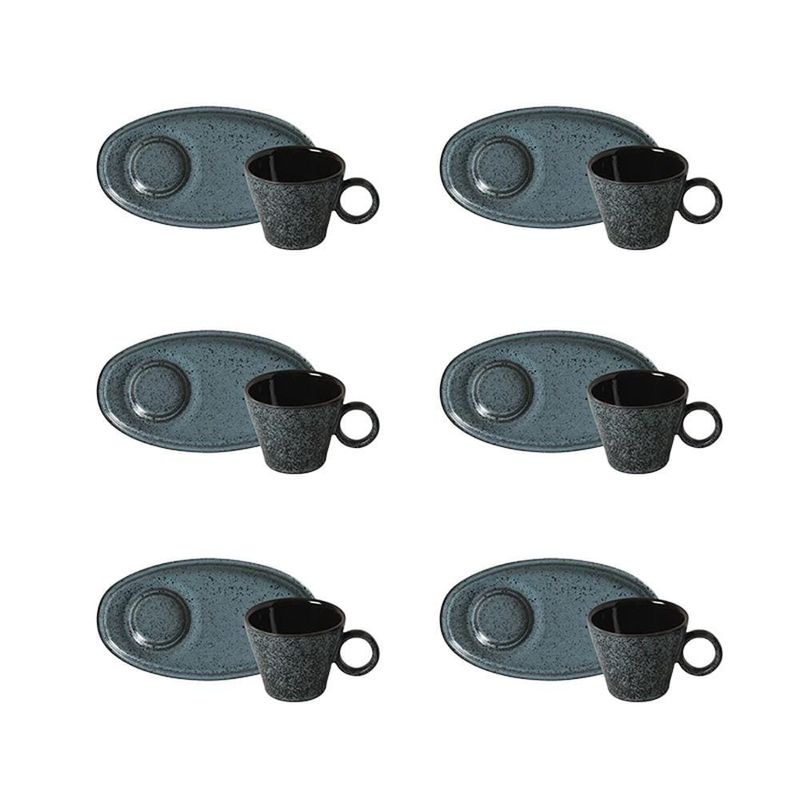 Seu café com um toque especial O conjunto de xícaras de café Neo Night Sky da Porto Brasil leva sua experiência de café a outro nível. Inspirado no céu noturno, cada peça combina o azul intenso com nuances de preto, criando um visual sofisticado e único. Com capacidade de 110ml e pires ovais elegantes, este conjunto é perfeito para quem aprecia design diferenciado e funcionalidade, seja no dia a dia ou em ocasiões especiais.Estilo e praticidade em harmoniaFabricado em Stoneware, material conhecido por sua resistência e durabilidade, o conjunto é ideal para uso frequente e pode ser levado ao micro-ondas e ao lava-louças. Além de versátil, ele adiciona um toque de exclusividade à sua mesa, sendo o ponto focal perfeito para compartilhar momentos com amigos e familiares.