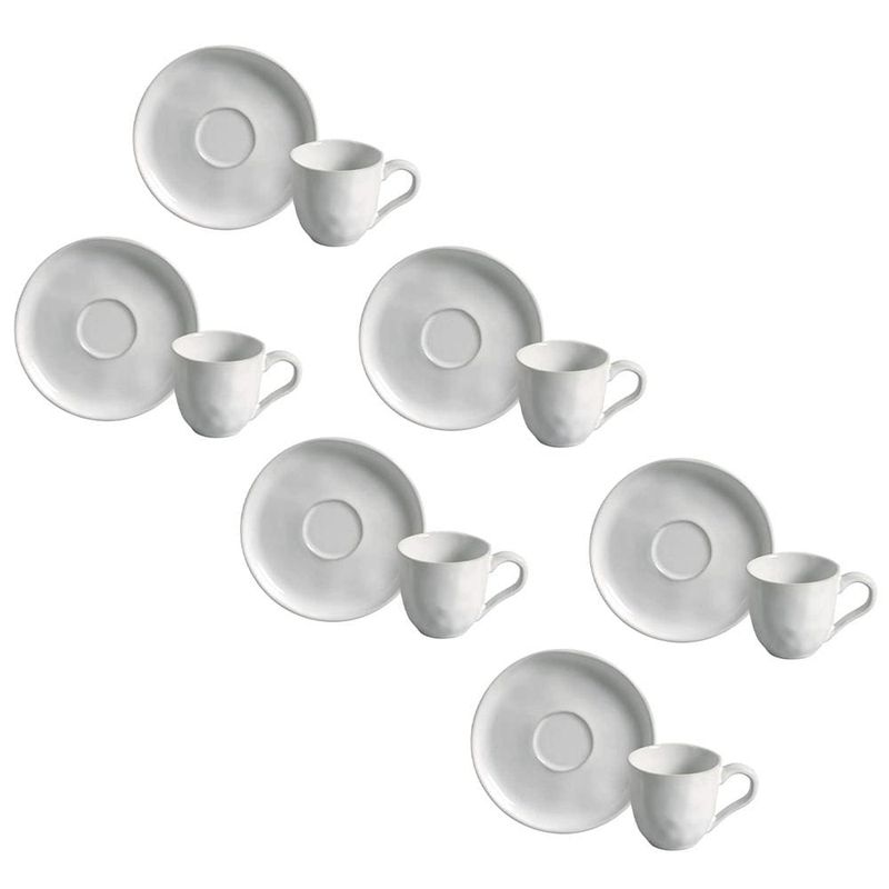 A simplicidade e a elegância do branco puroO conjunto de xícaras de café com pires porto Brasil Bio New White traz a beleza da simplicidade em um design clean e atemporal. O branco puro, aliado à elegância das peças, adapta-se a qualquer estilo de decoração, sendo perfeito para compor uma mesa sofisticada e versátil. Com capacidade de 120ml, essas xícaras são ideais para transformar sua pausa para o café em um momento de requinte.Qualidade e estilo em harmonia Produzido com Stoneware, material de alta qualidade, o conjunto é resistente e prático, podendo ser usado no micro-ondas, lava-louças e freezer. Além disso, a Porto Brasil adota processos sustentáveis e utiliza matérias-primas naturais em sua fabricação, refletindo compromisso com o meio ambiente.