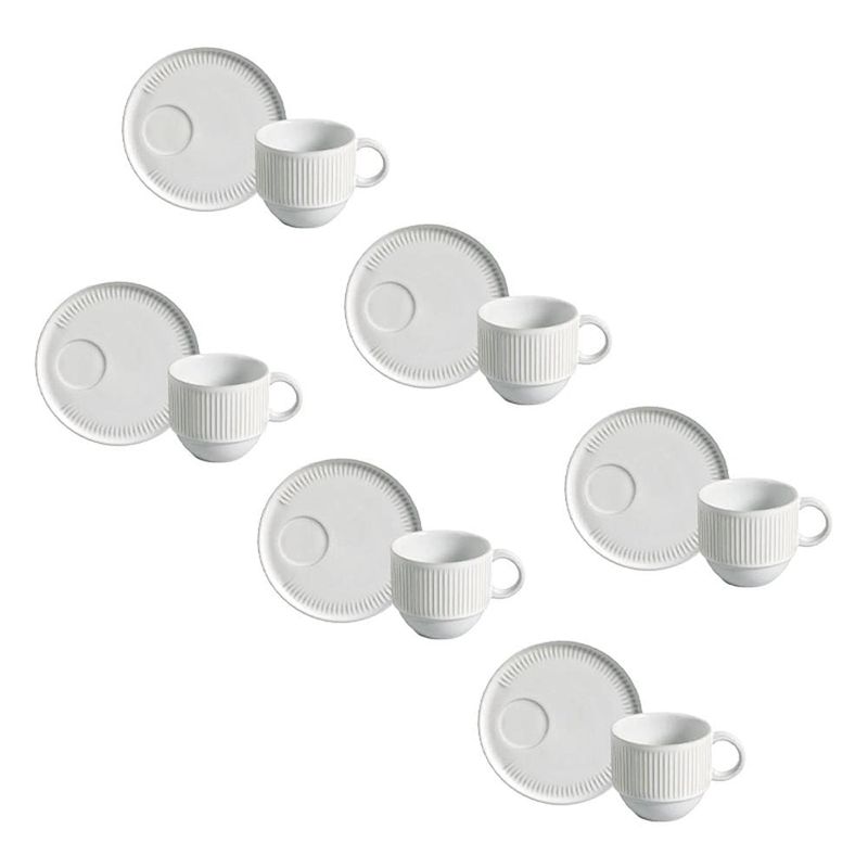 Beleza e simplicidade em cada peçaO conjunto de xícaras de chá com pires Linhas New White da Porto Brasil é perfeito para quem aprecia a elegância do minimalismo. Com design atemporal e acabamento impecável, as peças em branco trazem um toque de sofisticação discreta à sua mesa, combinando facilmente com qualquer estilo de decoração. Com capacidade de 230ml, cada xícara é ideal para desfrutar de uma generosa porção de chá em momentos de relaxamento ou encontros especiais.Funcionalidade e elegância no dia a diaProduzido em Stoneware, um material resistente e sustentável, o conjunto é projetado para durar, suportando o uso diário com praticidade e beleza. Compatível com micro-ondas e lava-louças, combina funcionalidade e conveniência. Sua versatilidade e design clean fazem desse conjunto uma escolha ideal para qualquer ocasião, agregando sofisticação e charme ao seu ritual de chá.