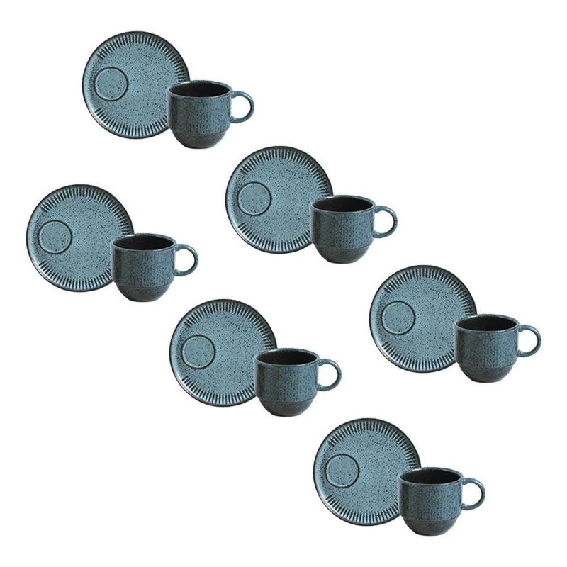 Requinte e beleza em cada peça O conjunto de xícaras de chá com pires Linhas Night Sky da Porto Brasil é inspirado no vasto céu, trazendo a magia das estrelas para sua mesa. Seus tons de azul e detalhes em relevo criam um ambiente único e relaxante, transformando cada gole de chá em uma verdadeira viagem ao universo. Com capacidade de 230ml, o conjunto é ideal para desfrutar de uma generosa xícara de chá em momentos tranquilos e especiais.Qualidade e sofisticação no seu dia a dia Feito de Stoneware, um material cerâmico resistente e sustentável, o conjunto garante durabilidade para o uso diário, sem abrir mão da elegância. Seu design minimalista, que evoca a serenidade do céu estrelado, é perfeito para adicionar um toque de mistério e sofisticação a qualquer ambiente. Além de ser fácil de limpar e adequado para micro-ondas e lava-louças, esse conjunto é uma escolha prática e refinada que agrega valor a sua mesa.
