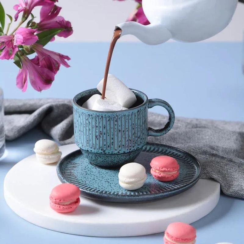 Requinte e beleza em cada peça O conjunto de xícaras de chá com pires Linhas Night Sky da Porto Brasil é inspirado no vasto céu, trazendo a magia das estrelas para sua mesa. Seus tons de azul e detalhes em relevo criam um ambiente único e relaxante, transformando cada gole de chá em uma verdadeira viagem ao universo. Com capacidade de 230ml, o conjunto é ideal para desfrutar de uma generosa xícara de chá em momentos tranquilos e especiais.Qualidade e sofisticação no seu dia a dia Feito de Stoneware, um material cerâmico resistente e sustentável, o conjunto garante durabilidade para o uso diário, sem abrir mão da elegância. Seu design minimalista, que evoca a serenidade do céu estrelado, é perfeito para adicionar um toque de mistério e sofisticação a qualquer ambiente. Além de ser fácil de limpar e adequado para micro-ondas e lava-louças, esse conjunto é uma escolha prática e refinada que agrega valor a sua mesa.