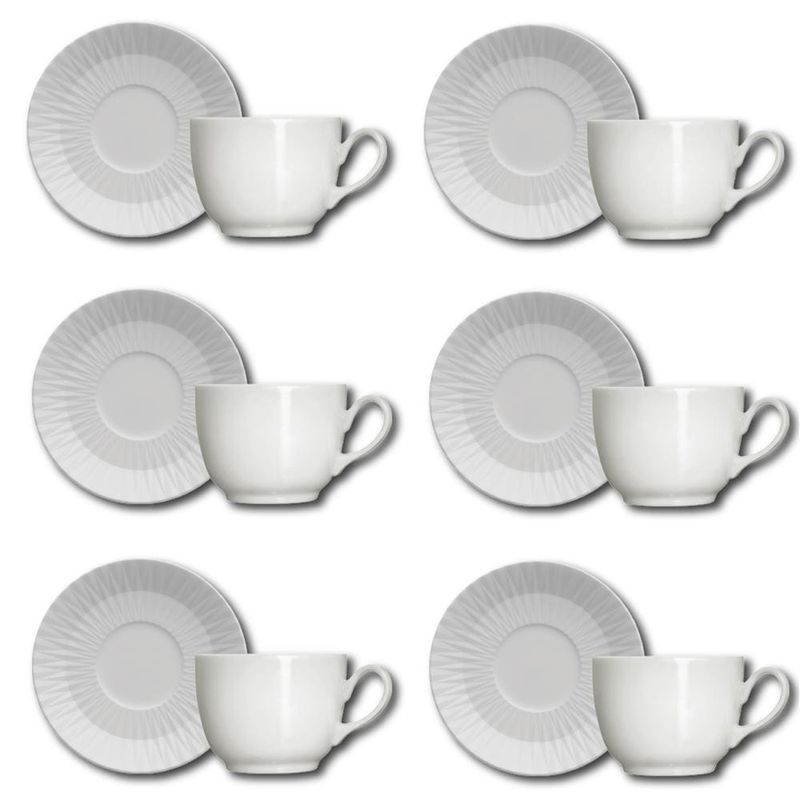 Adicione charme, beleza e elegância à mesa do café da manhã ou chá da tarde com o Conjunto de Xícaras Germer Diamante. São 6 xícaras com pires feitos em porcelana branca de alta qualidade e resistência e com belíssimo acabamento em alto-relevo que formam uma sequência geométrica, enriquecendo a decoração. Um belíssimo conjunto para servir seus convidados com requinte e bom gosto! Capriche na arte de servir, escolha Germer Porcelanas!