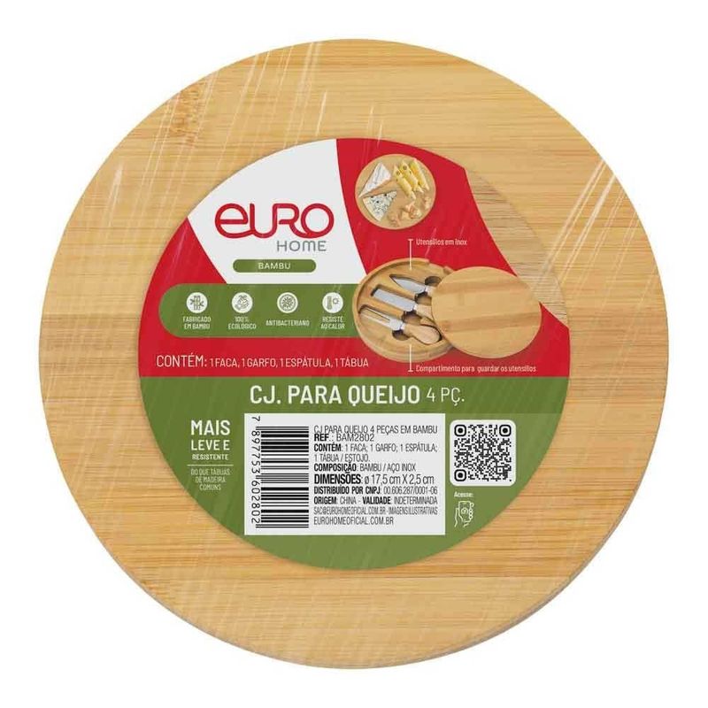 O Conjunto para Queijo da Euro Home é perfeito para quem busca elegância e praticidade ao servir. Composto por 4 peças, inclui uma tábua de bambu com compartimento para armazenar os utensílios e três peças em aço inox com cabo de madeira. Ideal para fatiar e servir diversos tipos de queijo, este conjunto é resistente, durável e traz um charme especial à sua mesa. O bambu é um material ecológico e naturalmente antibacteriano, enquanto os utensílios em inox garantem alta performance. Além de funcional, é uma excelente opção de presente para quem aprecia momentos de degustação com estilo. Tábua de bambu com compartimento para utensílios 3 utensílios em aço inox com cabo de madeira Medidas da tábua: 17,5 x 17,5 x 2,5 cm Peso total: 440g Design elegante e funcional Que tal aproveitar e conhecer novas toalhas de mesa, para deixar seus momentos ainda mais inesquecíveis? Aproveite!