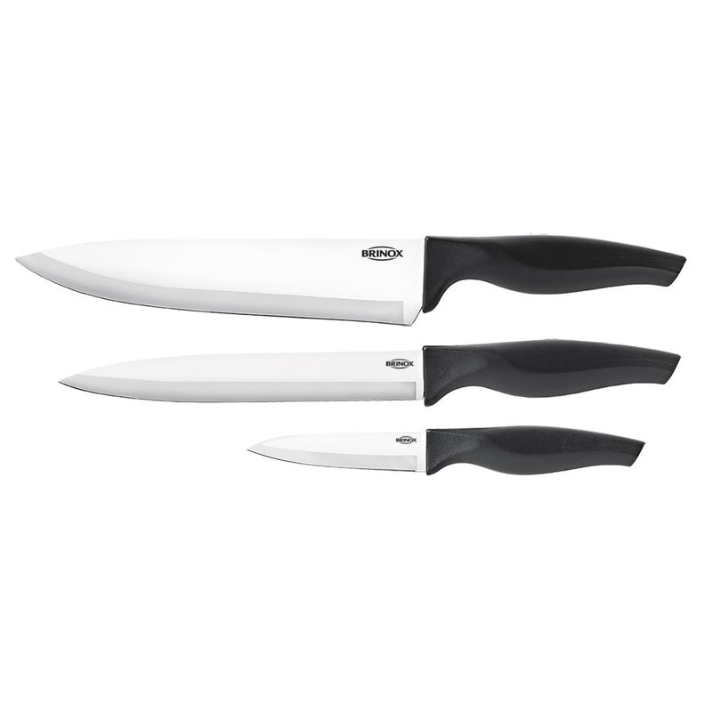 Facas práticas e excelentes para o dia a dia na cozinha. Fabricadas em aço inox polido, as facas da linha Cross garantem mais eficiência e durabilidade. Seu cabo em polipropileno texturizado, traz mais segurança e estabilidade na hora do corte. Possui lâmina com fio chanfrado apenas de um lado, para deixá-la mais afiada. Esse conjunto é composto por: faca para carne 8”, com medidas: medidas: 32,5 x 4,2 x 2,2, Faca para cozinha 6” com medidas: 28 x 3 x 2cm e Faca para legumes 3 ½”, com medidas: 19,5 x 2,4 x 1,8cm. Garantia do produto: 90 dias de garantia de acordo com o Código de Defesa do Consumidor + a Garantia do Fabricante
