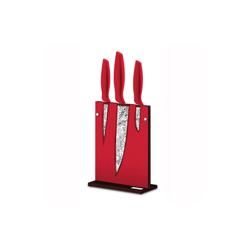 Conjunto Facas Skin Estilo Cool Vermelha 4pçs - Tramontina Tatuagem é muito mais que expressão. É arte, é emoção, é desejo. Inspirada nisso, a Tramontina Design Collection apresenta sua linha Skin: peças marcadas com desenhos cheios de estilo, que trazem toda a ousadia, juventude e modernidade das tatuagens. Lâmina com maior durabilidade, cabos de madeira com tratamento especial. Resistente a impactos e altas temperaturas. - Lâmina fabricada com aço inox DIN 1.4110 que aliado ao eficiente tratamento térmico sub-zero, confere à faca grande resistência ao desgaste do fio, além disso, a Tramontina Design Collection usa as tatuagens em peças inusitadas como as facas que acompanham um cepo diferenciado que brinca com transparência e cor. - Cabo emborrachado, tem ergonomia perfeita, o que facilita o manuseio. Também conta com proteção antimicrobiana. - Design diferenciado e moderno. - Pode ir á máquina de lavar louças. - Permanece bonita por muito mais tempo. Cor: Vermelha Fabricante: Tramontina