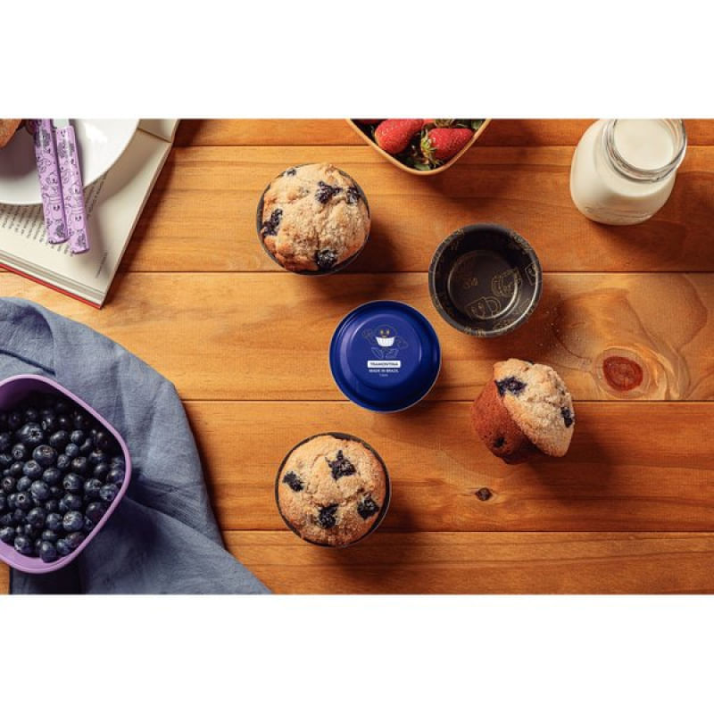 Conjunto Formas Cupcake Tramontina Groovy Breakfast Antiaderente Starflon Max Externo Azul 4 Peças Tramontina - O conjunto de formas para cupcake Tramontina Groovy Breakfast em alumínio com revestimento antiaderente Starflon Max e externo em poliéster azul 4 peças é perfeito para você que adora preparar bolinhos deliciosos, sejam eles cupcakes ou muffins. Com um design moderno e sofisticado, essas formas vão transformar a sua cozinha em uma verdadeira confeitaria. Feitas em alumínio de alta qualidade, elas garantem uma distribuição uniforme de calor, resultando em bolinhos assados de maneira perfeita. A cor azul vibrante traz um toque de estilo e personalidade para as suas criações. Seja para uma festa de aniversário, um chá da tarde com amigos ou simplesmente para adoçar o seu dia, ele é indispensável. Com medidas ideais para bolinhos individuais, essas formas garantem que cada cupcake tenha o tamanho perfeito. Assim, você pode soltar a imaginação e decorar cada um deles com coberturas coloridas e enfeites especiais! Características Gerais do Produto: Garantia: • 90 dias para vícios ou defeitos de fabricação.
