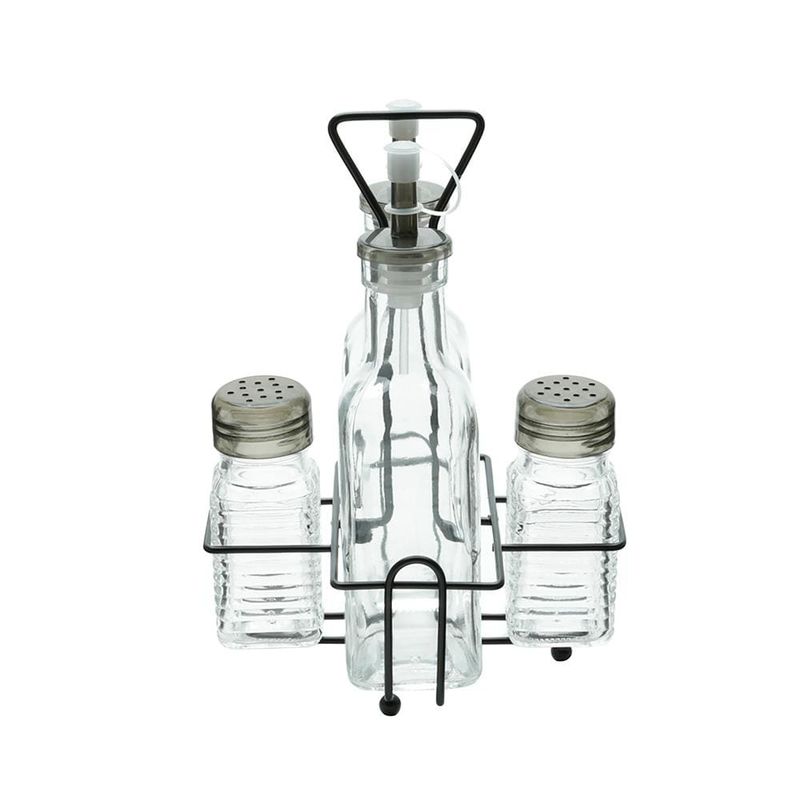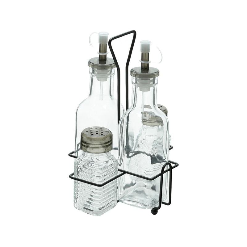 O Conjunto Galheteiro de Vidro com Suporte de Metal Preto da Lyor deixa sua mesa muito mais organizada e elegante. Com design moderno e funcional, ele é ideal para armazenar e servir óleos, vinagres, molhos e outros condimentos com sofisticação.Os frascos em vidro de alta qualidade oferecem durabilidade e transparência, facilitando a visualização dos líquidos. Com capacidade de 200ml e 80ml, são perfeitos para uso diário ou ocasiões especiais. As tampas dosadoras garantem precisão na hora de temperar, evitando desperdícios. O suporte em metal preto confere robustez e um visual contemporâneo, ideal para valorizar a decoração da mesa. Além disso, organiza os frascos de maneira prática, mantendo tudo sempre ao alcance.Frascos de vidro resistentes com acabamento eleganteTampas com bico dosador para facilitar o usoCapacidades de 200ml e 80ml para versatilidadeSuporte metálico preto moderno e funcionalCom o Galheteiro Lyor 4 Peças, sua mesa ganha mais praticidade, beleza e organização. Um item indispensável para quem aprecia elegância nos mínimos detalhes.