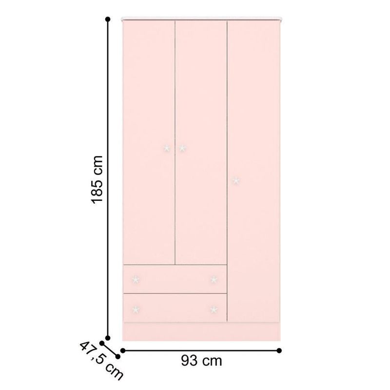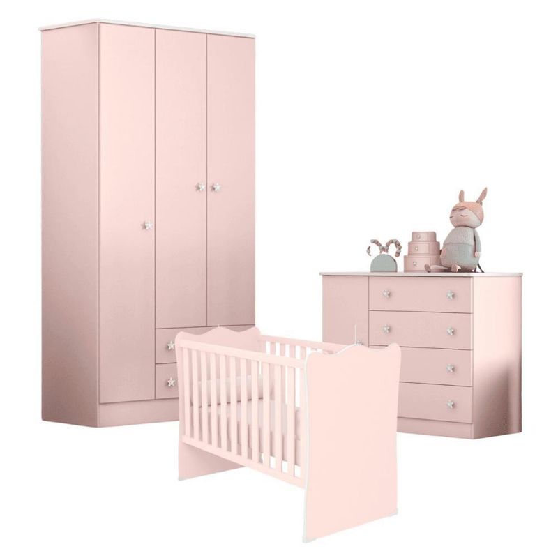 Conjunto Infantil Doce Sonho Rosa Acetinado Berço Doce Sonho + Kit Rodízios + Cômoda + Guarda-roupa Doce SonhoConjunto completo de quarto infantil é perfeito para você que procura praticidade e segurança na hora de montar o quarto do seu bebêA cômoda é feita em MDP 15/12mm, possuindo quatro gavetas com corrediças metálicas.O Guarda Roupa é feito em MDP, contém três portas e duas gavetas com corrediças metálicas.O berço é feito em MDP 15mm. Não acompanha colchão (comporta colchão de 10x130x60).Informações do BerçoAltura: 92,8 cmLargura: 68 cmComprimento 133,5 cmInformações Adicionais:Material: MDP 15 mmPés em MDF de 25mm Rosa AcetinadoEstrado Regulável em Quantas Alturas:3Peso suportado 40 KgAcompanha colchão Nãocomporta colchão de 10x130x60Dimensões do Guarda Roupa:Altura: 185 cmLargura: 93 cmProfundidade: 47,5 cmInformações do Guarda Roupa: Rosa AcetinadoGavetas: Sim (2) Corrediças Metálicas.Cabideiro Sim (1)Prateleiras: Sim (6)Puxadores: Sim (5) Estrela Poliestireno.Portas: Sim (3)Material: MDPInformações da CômodaAltura: 79 cmLargura: 93 cmProfundidade: 45 cmInformações da Cômoda: Rosa AcetinadoPossui Gavetas: Sim (4)corrediças metálicasPorta: Sim (1)Prateleira:Sim (1)Material: MDP 12/15mmItens Inclusos:1 Cômoda1 Guarda Roupa1 BerçoManual de MontagemKit completo para montagem e manual de instruçõesGarantia:3 meses contra defeito de fabricaçãoInformações Adicionais:- Fotos meramente ilustrativas do produto no ambiente.- Os objetos que ambientam as fotos não acompanham o produto;- Verificar descrição e tamanho do produto antes da compra.- Avaliar a mercadoria no ato do recebimento e recuse em caso de divergência ou avarias.- Mantenha as informações de contato e endereço de entrega atualizados para entrarmos em contato caso necessário.- Limpar com flanela ou pano macio seco, não utilizar produtos abrasivos, desengordurantes, álcool ou solvente. Não expor o produto diretamente à luz solar e à umidade.* Sugerimos a contratação de um montador profissional para a montagem do produto. Não nos responsabilizamos por avarias causadas no ato da montagem.* Não nos responsabilizamos pela montagem e desmontagem do produto no ato da entrega e devolução, assim como os custos gerados nestas situações.* A transportadora entregará o produto no andar térreo do endereço de entrega.* Não nos responsabilizamos por subir escadas, corredores e elevadores ou transporte por guincho em apartamento Altura do Produto com Embalagem (cm): 42,1 | Material para Filtro MDP | Color: Rosa | Modelo Doce Sonho | Num. Volumes: 2 | REQUIRES_ASSEMBLY: Sim | Peso Produto Com Embalagem (Kg): 114 | Weight: 114.0 | Tipo de Cama/Cabeceira: Padrão | Length: 185 | Acompanha Colchão Sem Colchão | Width: 74 | Comprimento Produto com Embalagem (cm): 185,9 | Height: 42 | Largura Produto com Embalagem (cm): 74,5