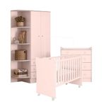 Conjunto Infantil Doce Sonho Rosa: Berço Doce Sonho + Kit Rodízios + Cômoda + Guarda-roupaConjunto de quarto infantil completo é perfeito para você que procura praticidade e segurança na hora de montar o quarto do seu bebêA cômoda é feita em MDP 15/12mm, contém quatro gavetas com corrediças metálicas.O guarda roupa é feito em MDP 12/15mm,com 2 portas, 3 gavetas e 7 prateleiras.O berço é feito em MDP 15mm. Não acompanha colchão (comporta colchão de 10x130x60). Acompanha kit de rodízios para facilitar o manuseio do produtoInformações do BerçoAltura: 97,8 cmLargura: 68 cmComprimento 133,5 cmInformações Adicionais:Material: MDP 15 mmPés em MDF de 25mm Rosa AcetinadoEstrado Regulável em Quantas Alturas:3Peso suportado 40 KgAcompanha colchão Nãocomporta colchão de 10x130x601 Kit de rodízios 2 com trava e 2 semDimensões do Guarda Roupa:Altura: 185 cmLargura: 88,5 cmProfundidade: 47,5 cmInformações do Guarda Roupa: Rosa AcetinadoGavetas: Sim (3)Cabideiro Sim (1)Puxadores: Sim (8)Prateleiras: Sim (7)Portas: Sim (2)Material: MDPInformações da Cômoda:Altura: 94 cmLargura: 84 cmProfundidade: 42,5 cmInformações da Cômoda: Rosa AcetinadoPossui Gavetas: Sim (4) Corrediças metálicasPuxadores: Sim (8) Estrela em PoliestirenoMaterial: MDP 15/12mmItens Inclusos:1 Cômoda1 Berço1 Guarda RoupaManual de MontagemKit completo para montagem e manual de instruçõesGarantia:3 meses contra defeito de fabricaçãoInformações Adicionais:- Fotos meramente ilustrativas do produto no ambiente.- Os objetos que ambientam as fotos não acompanham o produto;- Verificar descrição e tamanho do produto antes da compra.- Avaliar a mercadoria no ato do recebimento e recuse em caso de divergência ou avarias.- Mantenha as informações de contato e endereço de entrega atualizados para entrarmos em contato caso necessário.- Limpar com flanela ou pano macio seco, não utilizar produtos abrasivos, desengordurantes, álcool ou solvente. Não expor o produto diretamente à luz solar e à umidade.* Sugerimos a contratação de um montador profissional para a montagem do produto. Não nos responsabilizamos por avarias causadas no ato da montagem.* Não nos responsabilizamos pela montagem e desmontagem do produto no ato da entrega e devolução, assim como os custos gerados nestas situações.* A transportadora entregará o produto no andar térreo do endereço de entrega.* Não nos responsabilizamos por subir escadas, corredores e elevadores ou transporte por guincho em apartamento Length: 185 | Largura Produto com Embalagem (cm): 74,5 | Num. Volumes: 3 | Color: Rosa | Material para Filtro MDP | Modelo Doce Sonho | REQUIRES_ASSEMBLY: Sim | Tipo de Cama/Cabeceira: Padrão | Peso Produto Com Embalagem (Kg): 108.2 | Weight: 108.2 | Acompanha Colchão Sem Colchão | Altura do Produto com Embalagem (cm): 51 | Comprimento Produto com Embalagem (cm): 185,9 | Width: 74 | Height: 51