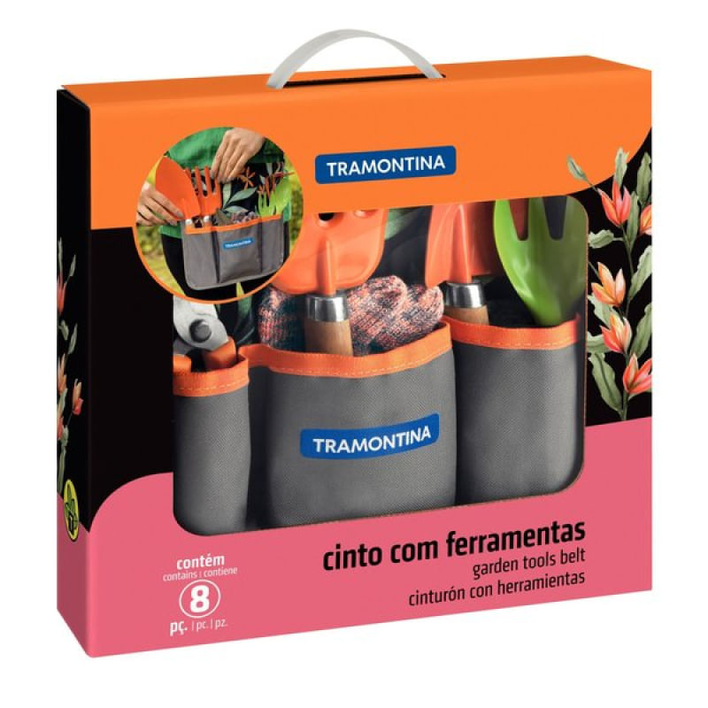 Conjunto Jardinagem Tramontina Cinto 8 Peças Tramontina - O cuidado e a manutenção do seu jardim estarão completos com o conjunto para jardinagem Tramontina com cinto 8 peças. Cada ferramenta possui características únicas para realizar a manutenção do seu jardim. Leves e práticas, elas acompanham uma linda embalagem litografada, perfeita para armazenar o kit de produtos. Cada cantinho ficará bem cuidado com esse conjunto, que pode ser um excelente presente para os amantes de flores e jardins. Características Gerais do Produto: Garantia: • 90 dias para defeito de fabricação