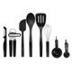 Mime-se com a oportunidade. Leve sua criatividade para o próximo nível com ferramentas e gadgets KitchenAid. De cortadores de pizza e bifes a colheres de sorvete e muito mais - tudo com designs não artificiais que liberam sua criatividade e liberam suas ideias. Conjunto com colher, espátula, descascador, abridor de latas, batedor e espátula, além de 4 copos medidores e colheres medidoras - a escolha perfeita para quem quer experimentar na KitchenAid, acabou de sair de casa ou simplesmente quer que todos os utensílios de cozinha combinem . Todas as ferramentas (exceto o batedor e o abridor de latas) são resistentes ao calor até 232°C e seguras para uso em revestimentos antiaderentes frágeis. As ferramentas podem ser lavadas na máquina de lavar louça para uma limpeza tão fácil e descomplicada quanto possível. - Especificações: • Cor: Preto• Garantia limitada vitalícia
