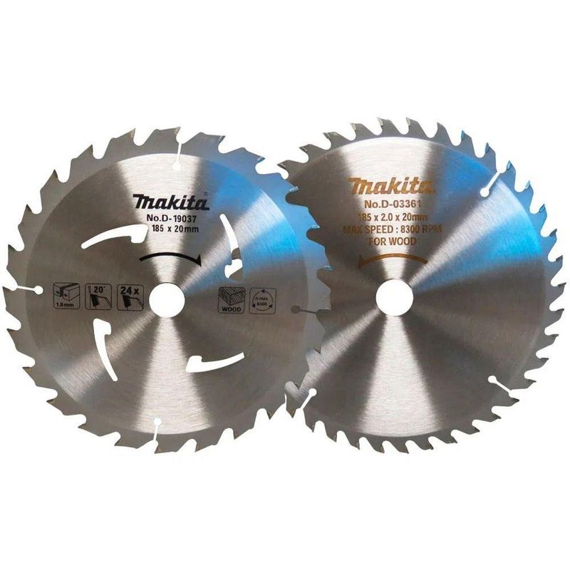 Conjunto Lâmina Para Serra Circular 7 1/4'' D-21412 Makita#html-body [data-pb-style=WXV5PVP]{justify-content:flex-start;display:flex;flex-direction:column;background-position:left top;background-size:cover;background-repeat:no-repeat;background-attachment:scroll}Conjunto Lâmina para Serra Circular 7 1/4 MakitaO Conjunto Lâmina para Serra Circular 7 1/4 Makita é a escolha ideal para cortes precisos e eficientes em madeira. Este Twin Pack vem com duas lâminas de alta qualidade, sendo uma com 24 dentes para cortes mais rápidos e outra com 40 dentes para acabamentos mais finos.Projetadas para proporcionar alto desempenho e durabilidade, as lâminas possuem diâmetro de 185 mm e furo de 20 mm, compatíveis com a maioria das serras circulares do mercado. São ideais para aplicações em marcenarias, carpintarias e uso profissional ou doméstico em projetos de corte de madeira.Com esse conjunto, você tem versatilidade, precisão e o respaldo da excelência Makita em acessórios para ferramentas elétricas.Especificações Técnicas:Diâmetro: 185 mmFuro (encaixe): 20 mmNúmero de dentes: 24 e 40 dentesMaterial de corte: MadeiraTipo de disco: Serra CircularCategoria: Lâminas e DiscosMarca: MakitaCódigo do fornecedor: D-21412Embalagem: 1 Conjunto com 2 Lâminas (Twin Pack)Garantia:Garantia conforme política do fabricante Makita.Itens Inclusos:1 Disco de serra 185 x 20 mm x 24 dentes1 Disco de serra 185 x 20 mm x 40 dentesCom Makita, você garante cortes mais precisos e um resultado profissional. NA