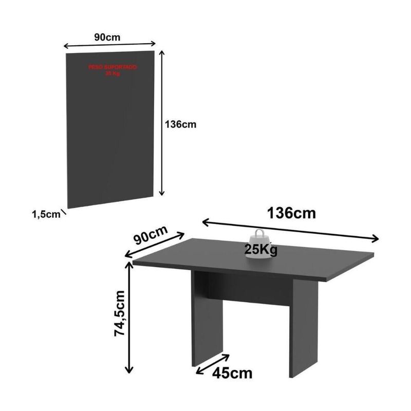Conjunto Mesa De Escritório Reunião 136cm Com Painel Para Tv Multimóveis Cr25338 PretoUm ambiente mais profissional começa com móveis que inspiram foco e confiança. O Conjunto Mesa de Escritório Reunião 136cm com Painel para TV Multimóveis CR25338 foi pensado para criar um espaço organizado, confortável e funcional, ideal para encontros produtivos e decisões importantes no dia a dia corporativo.Características:- Produzido em MDP de 15/25mm, garantindo resistência e estabilidade.- Acabamento em BP: oferece maior proteção contra riscos e desgaste.- Tampo robusto de 30mm que suporta até 25kg: ideal para apoiar notebooks, documentos e acessórios.- Painel (MDP/MDF 15mm) compatível com TV de até 32 (se instalado na vertical) e com TV de até 42 (se instalado na horizontal), suportando até 35kg. Não acompanha TV.- Design funcional que se adapta a diferentes ambientes de escritório e salas de reunião.Conteúdo da Embalagem:1 (uma) Mesa de Reunião1 (um) Painel de TVManual de MontagemKit FerragemDimensões do Produto Montado:Mesa - Altura: 74,5cm | Largura: 136cm | Profundidade: 90cmPainel - Altura: 136cm | Largura: 90cm | Profundidade: 1,5cm*Devido às variações de tamanho dos televisores no mercado, sugerimos que verifique as medidas da sua TV e compare com as do painel antes de efetuar a compra.*Você pode consultar as medidas detalhadas na imagem técnica do produto.*As cores do produto podem sofrer variações de tonalidade de acordo com as configurações do seu dispositivo.Imagens meramente ilustrativas. Decoração, cadeiras e eletrônicos não acompanham o produto.O produto será entregue desmontado e não disponibilizamos o serviço de montagem. Acabamento: BP | Tonalidade: Marrom | Material: MDP | Referência do Modelo: CR25338 | Instruções de Cuidado: Para uma limpeza mais efetiva, utilizar apenas pano macio umedecido e sabão neutro. Não utilizar produtos abrasivos. | Sistema de Montagem: O produto acompanha manual de montagem e kit ferragem. Será entregue desmontado e não disponibilizamos o serviço de montagem. | Produto Composto por: 1 mesa, 1 painel para TV, manual de montagem e kit ferragem. | Altura Montado: 74.5 | Largura Montado: 136 | Profundidade Montado: 90 | Tamanho (L x A x P): 136 x 74,5 x 90 | Peso do Produto: 45 | Garantia do Fabricante: 3 | Fabricante: Tecnomobili | Requer Montagem: Sim | Produto: Conjunto de Escritório | Prateleiras: 0 | Gavetas: 0 | Com Gavetas: Não | É em forma de L: Não | É Gamer: Não | Altura (cm): 74,5 cm | Comprimento (cm): 90 cm | Largura (cm): 136 cm | Profundidade (cm): 90 cm | Material da mesa: MDP | Com luzes led: Não | Materiais da escrivaninha: MDP | Altura do Produto com Embalagem: 9 cm | Largura do Produto com Embalagem: 92 cm | Comprimento do Produto com Embalagem: 140 cm | Peso do Produto com Embalagem: 45000 g | Marca: Multimóveis | Inclui estante para livros: Não | É flutuante: Não | Destaque 1: Produzido em MDP: durabilidade e resistência. | Destaque 2: Acabamento em BP: facilidade na limpeza. | Destaque 3: Acompanha painel para TV de até 32'' (vertical) e até 42'' (horizontal). | Destaque 4: Tampo da mesa com espessura de 30mm. | Destaque 5: Tamanho do produto montado (L x A x P): 136 x 74,5 x 90 cm | Estilo: Moderno | Peso (kg): 45 kg | Tempo de montagem: N/A | Capacidade em peso: N/A | Inclui manual de instruções: Sim | Quantidade de caixas de embalagem: 02 | Baterias são necessárias?: Não | Certificação de teste externa: N/A | Peso do item: unit=kilograms;value=45 | Dimensões do item P x L x A: depth#value=90;depth#unit=centimeters;width#value=136;width#unit=centimeters;height#value=74.5;height#unit=centimeters | Quantidade de itens: 1 | Número da peça: CR25338.T97 | Tipo de Garantia: Garantia do Fabricante | Montagem: Necessita Montagem | País de Origem: Brasil | Palavras-chave: mesas l de escritorio, escrivaninha para quarto, mesa para escritorio em l, mesa de escritorio em l, mesa escritorio com gaveteiro, escrivaninha estante, estacao de trabalho em l, mesa de escritorio, mesa computador, mesa escritorio l | Componentes incluídos: Mesa Auxiliar | Tipo da embalagem do vendor: Sem embalagem adicional | Inclui manual de montagem: Sim | Cor: Preto