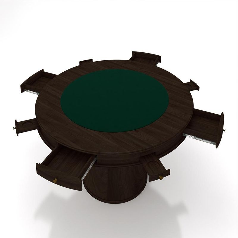 O Conjunto de Mesa Bellagio e as Cadeiras de Poker são uma adição elegante e luxuosa para transformar sua área de entretenimento em um oásis de sofisticação. Inspirada nos cassinos de Las Vegas, a mesa Bellagio apresenta um design refinado com uma espaçosa superfície revestida em tecido premium, oferecendo um ambiente aconchegante para jogos de cartas. A estrutura sólida e elegante, combinada com materiais de alta qualidade, garante durabilidade e um toque luxuoso ao seu espaço de jogos. As 4 Cadeiras de Poker em Madeira Maciça complementam perfeitamente a mesa, destacando-se pelo artesanato e conforto. Esculpidas em madeira maciça, proporcionam solidez, enquanto os estofamentos luxuosos garantem horas de jogo confortável. Mais do que simples móveis, esse conjunto eleva a experiência do jogo, criando um ambiente acolhedor para momentos memoráveis com amigos e familiares. Seja em noites casuais de cartas ou eventos formais, essa escolha perfeita oferece a combinação ideal entre estilo, durabilidade e sofisticação. Dimensões do Mesa: Largura: 110cm; Altura: 78cm; Profundidade: 110cm; Dimensões da Cadeira: Largura: 61 cm Altura: 79 cm Profundidade: 59 cm Altura do Encosto: 21 cm Profundidade do Assento: 50 cm Largura do Assento: 52 cm Altura do Assento ao Chão: 50 cm Característica da Mesa: Estrutura: Madeira Maciça de Tauari; Acabamento: Pintura em Capuccino; Tampo: Reversível (Dupla Face) em Tecido Verde/ Madeira Lisa Capuccino da cor da mesa; Material dos Pés: Madeira Maciça de Tauari; Detalhes: 4 Gavetas em Madeira com Puxadores Metalizados, Porta Copos; Características do Produto: Material da Estrutura: Madeira Maciça Taeda Reflorestada e MDF Encosto: Ergonômico MDF com Espuma Assento: Estofado D-26 Material dos Pés: Madeira Maciça Tipo de Pés: Fixo com sapata plástica Revestimento: Veludo Peso Suportado: 150 Kg Conteúdo da Embalagem: 1 Mesa de Carteado e 4 Cadeiras; Necessita de Montagem: Sim, a Mesa; Montagem Simples (Parafusar o Tampo com a Base); Instruções/Cuidado: Utilizar um pano levemente umedecido com água, seguido de pano seco. Evitar exposição ao sol, para que o produto não sofra alteração nas cores. Não limpar com escovas ou produtos abrasivos. Observações Importantes: - As imagens são meramente ilustrativas e não acompanham objetos de decoração e eletros - Pode haver alguma diferença de tonalidade entre a imagem e o produto, por conta do tratamento de imagens e a calibração de cores da sua tela. - Todos os nossos produtos são enviados devidamente embalados e com total segurança - Confira as dimensões do produto no momento da compra e certifique-se de que passará normalmente por elevadores, portas, escadas e/ou corredores, evitando assim futuros desagrados ou imprevistos com a entrega do produto.