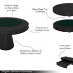 O Conjunto de Mesa Bellagio e as Cadeiras de Poker são uma adição elegante e luxuosa para transformar sua área de entretenimento em um oásis de sofisticação. Inspirada nos cassinos de Las Vegas, a mesa Bellagio apresenta um design refinado com uma espaçosa superfície revestida em tecido premium, oferecendo um ambiente aconchegante para jogos de cartas. A estrutura sólida e elegante, combinada com materiais de alta qualidade, garante durabilidade e um toque luxuoso ao seu espaço de jogos. As 6 Cadeiras de Poker em Madeira Maciça complementam perfeitamente a mesa, destacando-se pelo artesanato e conforto. Esculpidas em madeira maciça, proporcionam solidez, enquanto os estofamentos luxuosos garantem horas de jogo confortável. Mais do que simples móveis, esse conjunto eleva a experiência do jogo, criando um ambiente acolhedor para momentos memoráveis com amigos e familiares. Seja em noites casuais de cartas ou eventos formais, essa escolha perfeita oferece a combinação ideal entre estilo, durabilidade e sofisticação. Dimensões do Mesa: Largura: 140cm; Altura: 78cm; Profundidade: 140cm; Dimensões da Cadeira: Largura: 61 cm Altura: 79 cm Profundidade: 59 cm Altura do Encosto: 21 cm Profundidade do Assento: 50 cm Largura do Assento: 52 cm Altura do Assento ao Chão: 50 cm Característica da Mesa: Estrutura: Madeira Maciça de Tauari; Acabamento: Pintura em Preto Brilho; Tampo: Reversível (Dupla Face) em Tecido Verde/ Madeira Lisa Preto Brilho da cor da mesa; Material dos Pés: Madeira Maciça de Tauari; Detalhes: 6 Gavetas em Madeira com Puxadores Metalizados, Porta Copos; Características do Produto: Material da Estrutura: Madeira Maciça Taeda Reflorestada e MDF Encosto: Ergonômico MDF com Espuma Assento: Estofado D-26 Material dos Pés: Madeira Maciça Tipo de Pés: Fixo com sapata plástica Revestimento: PU Peso Suportado: 150 Kg Conteúdo da Embalagem: 1 Mesa de Carteado e 6 Cadeiras; Necessita de Montagem: Sim, a Mesa; Montagem Simples (Parafusar o Tampo com a Base); Instruções/Cuidado: Utilizar um pano levemente umedecido com água, seguido de pano seco. Evitar exposição ao sol, para que o produto não sofra alteração nas cores. Não limpar com escovas ou produtos abrasivos. Observações Importantes: - As imagens são meramente ilustrativas e não acompanham objetos de decoração e eletros - Pode haver alguma diferença de tonalidade entre a imagem e o produto, por conta do tratamento de imagens e a calibração de cores da sua tela. - Todos os nossos produtos são enviados devidamente embalados e com total segurança - Confira as dimensões do produto no momento da compra e certifique-se de que passará normalmente por elevadores, portas, escadas e/ou corredores, evitando assim futuros desagrados ou imprevistos com a entrega do produto.