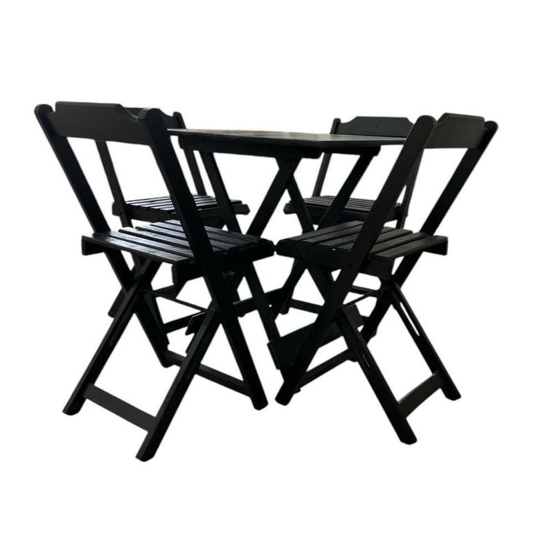 Conjunto Mesa Dobrável Com Tampo Em Mdf Ultra Plus E 4 Cadeiras Dobráveis PretoConjunto Mesa Dobrável com Tampo em MDF Ultra Plus e 4 Cadeiras Dobráveis Preto -Conjunto Mesa Dobrável com Tampo em MDF Ultra Plus e 4 Cadeiras DobráveisModernidade e funcionalidade para transformar seu ambiente!O Conjunto de Mesa Dobrável com Tampo em MDF Ultra Plus e 4 Cadeiras Dobráveis combina resistência, estilo e praticidade. O tampo em MDF Ultra Plus oferece alta durabilidade e acabamento impecável, enquanto a estrutura dobrável permite fácil armazenamento e transporte, perfeito para quem valoriza espaços otimizados e bem decorados.Ideal para áreas internas, varandas, sacadas ou pequenos espaços, esse conjunto traz mais conforto e elegância ao seu dia a dia.Destaques do produto:Mesa com tampo em MDF Ultra Plus: mais resistência e acabamento premium4 cadeiras dobráveis em madeiraEstrutura reforçada e fácil de guardarDesign moderno que combina com diversos estilos de decoraçãoIdeal para uso residencial ou comercialVersatilidade e qualidade em cada detalhe!Características Gerais do Produto:- Material Estrutura: Madeira Maciça- Altura: Altura da mesa 75cm/Altura total da cadeira 78cm- Largura: Largura da mesa 70cm/Largura da cadeira 38cm- Peso: Pesa da mesa 8,200kg/ Peso da cadeira 4,600kg- Profundidade: Profundidade da mesa 70cm/ Profundidade da cadeira 36cmAcompanha o produto:- 1 Mesa Dobrável Com Estrutura em Madeira e Tampo em MDF4 Cadeiras DobráveisGarantia:- 7 dias de garantia