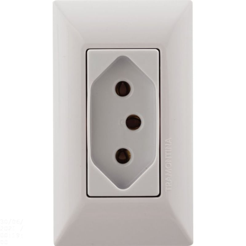 Conjunto Móvel 1 Tomada 2P+T 10A Tramontina Aria Branca Tramontina - Características Gerais do Produto: • Conjunto completo ou Módulo: Conjunto completo • Cor: Branco • Tipo / Função: Tomada • Quantidade de Tomadas: 1 • Corrente (A): 10A • Para embutir nos móveis: Sim, embutir em móveis Garantia: • 1 Ano