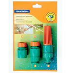 O Conjunto para Irrigação com Engates Rápidos da Tramontina é um produto fabricado com matéria-prima de alta qualidade proporcionando uma irrigação precisa e confiávelEle possui sistema de bloqueio da água. O jato é regulável, podendo ser forte com pressão para molhar o gramado ou plantas grandes, e um jato suave para molhar culturas mais sensíveis como flores e hortas.Tem sistema intercambiável que se adapta a todo o sistema de irrigação e dispensa o uso de ferramentas na montagem.