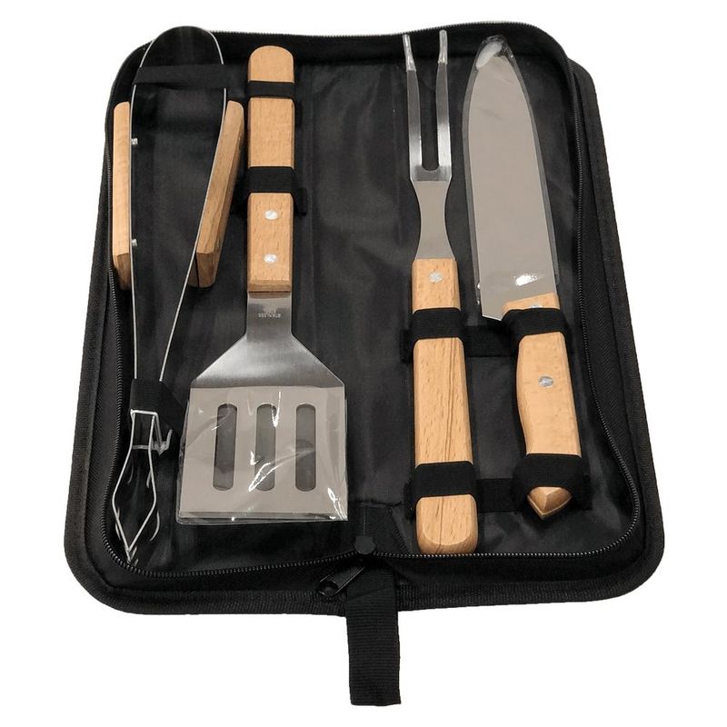 Que tal ter sempre a mão um Conjunto para Churrasco e estar sempre pronto para fazer aquele churrasco maravilhoso no fim de semana?! Com esse kit você nunca fica na mão! Com todos os utensílios que você precisa para se tornar um mestre churrasqueiro e preparar um churrasco saboroso e super prático! Vem com estojo para levar à qualquer lugar e guardar com segurança, lâmina de ótimo corte e durabilidade e pegadores de madeira para não queimar as mãos! Perfeito como presente para o Dia dos Pais e para preparar um churrasco de respeito! Características: • Modelo: Conjunto de Churrasco 4 Peças com Estojo • Referência: 2149270 • Garantia do Fornecedor : 3 meses contra defeitos de fabricação Itens inclusos: • 1 Faca • 1 Espátula • 1 Garfo • 1 Pinça • 1 Estojo Peso e Dimensões Aproximadas do produto na caixa: • Largura: 40 cm. Altura: 6 cm. Profundidade: 15 cm. • Peso: 610 g.