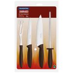 Deixe mais prático o seu churrasco em confraternizações com a família e os amigos com o Conjunto Tramontina Plenus.Com lâminas fabricadas em aço inox, as peças oferecem mais qualidade e resistência, pois são submetidas a um tratamento térmico especial. E a chaira conta com haste de aço carbono cromado para manter suas facas sempre com um bom fio de corte. E mais! Levam beleza à sua mesa e tem um manuseio leve e confortável, devido aos cabos de polipropileno na cor marrom.Itens perfeitos e indispensáveis para tornar seus momentos ainda mais gostosos!