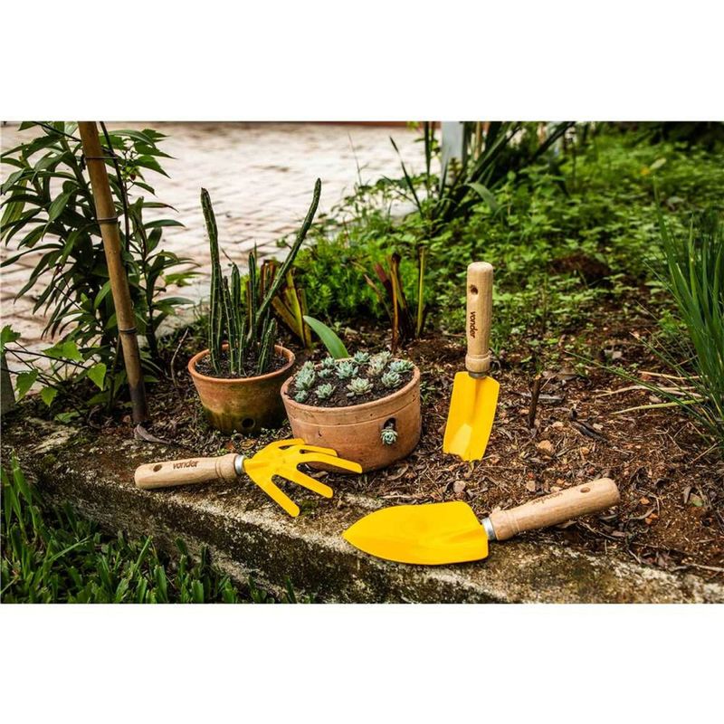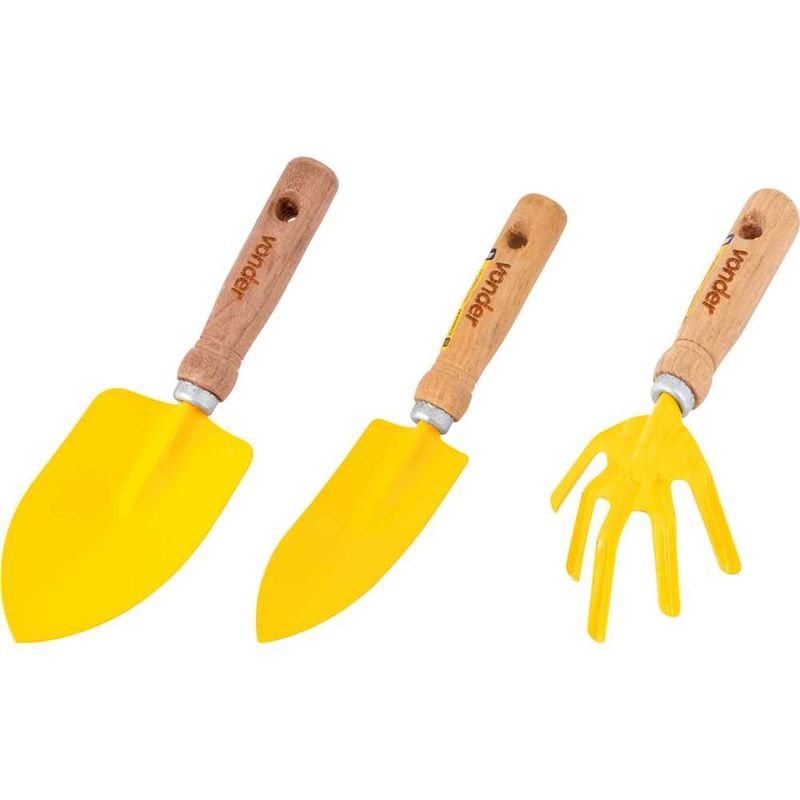 Conjunto Para Jardim, com 3 Peças, Cabos em Madeira, Vonder OstenVonder - Conteúdo da embalagem: 1 Conjunto de ferramentas para jardim, sendo: 1 pazinha estreita, 1 pazinha larga e 1 escardilho. Aplicação: Indicado para a manutenção de vasos e jardins. Destaques: Corpo em aço temperado, garantindo maior resistência e durabilidade, com pintura eletrostática a pó, proporcionando melhor apresentação visual e proteção contra oxidação. Referência: 3131003000 Garantia - E (CDC): Garantia legal: 90 dias Nº de peças: 3 peças Cor: Amarelo Acabamento: Pintura eletrostática a pó Material do cabo: Madeira Massa aproximada (peso): 0,44 kg Material do corpo do conjunto para jardim: Aço carbono temperado Destaques Comercial: Corpo em aço temperado com pintura eletrostática, oferecendo resistência, durabilidade e proteção contra oxidação. Aplicação Comercial: Indicado para a manutenção de vasos e jardins. Características Gerais do Produto: Garantia: • 3 Meses