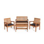 Conjunto para Jardim Robust Tecido PretoO Conjunto Robust é uma ótima escolha para complementar o seu jardim, varanda ou qualquer outra área da sua casa. Fabricado em Madeira Lyptos Grandis garante uma melhor para bem acomodar sua família e amigos nos melhores os. Com o seu acabamento em Stain fornece uma melhor qualidade ao conjunto. Para um melhor conforto e descanso acompanha almofadas com tecido impermeável para serem colocadas sobre o assento de madeira das poltronas.Especificações Técnicas:- Marca: Zanimar- Cor: Preto- Produto: Conjunto Para Jardim- Tipo: Jardim- Acabamento: Pintura em Stain- Material: Madeira Lyptos Grandis- Material das Almofadas: Tecido Impermeável- Quantidade De Lugares: 04 Lugares- Dimensões da mesa: Altura: 42,00 (cm) x Largura: 46,00 (cm) x Comnto: 85,00 (cm)- Dimensão das poltronas: Altura Total: 79,00 (cm) x Altura do Assento: 36,00 (cm) x Largura Poltrona 01 Lugar: 50,00 (cm) x Largura Poltrona 02 Lugares: 105,00 (cm) x Profundidade Assento das Poltronas: 45,00 (cm)- Resistência: 120kg- Peso do Conjunto: 35,00kg- Garantia: 03 MesesObservação: Produto enviado desmontado via transportadora (não nos responsabilizamos pela montagem do produto).